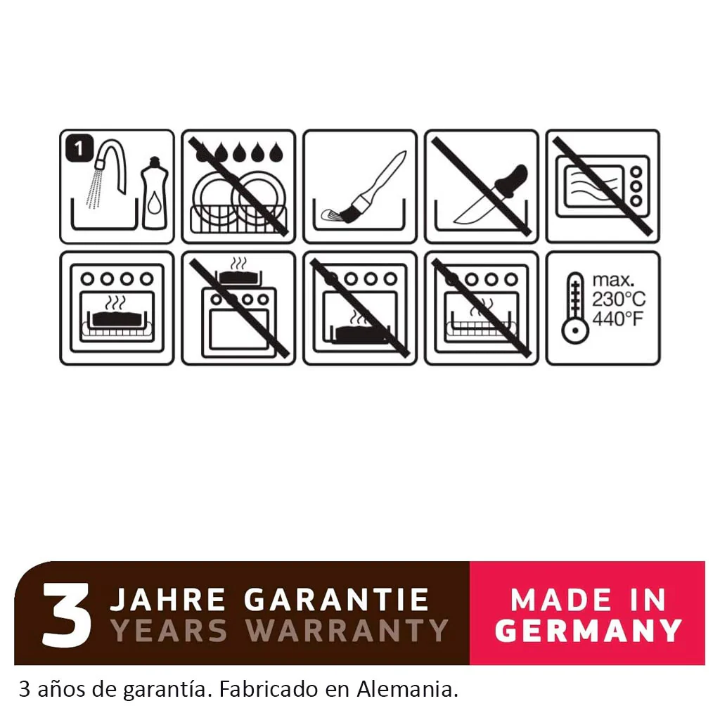 - Apto para horno. Temperatura máxima 230º C.