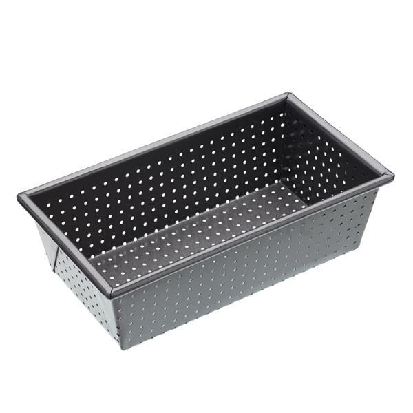 - Gracias a la placa perforada que forma la pared del molde el aire llega más y mejor a la superficie del alimento, lo que garantiza una corteza crujiente en el pan de molde y un fondo bien cocido en las terrinas de carne y los bizcochos densos.