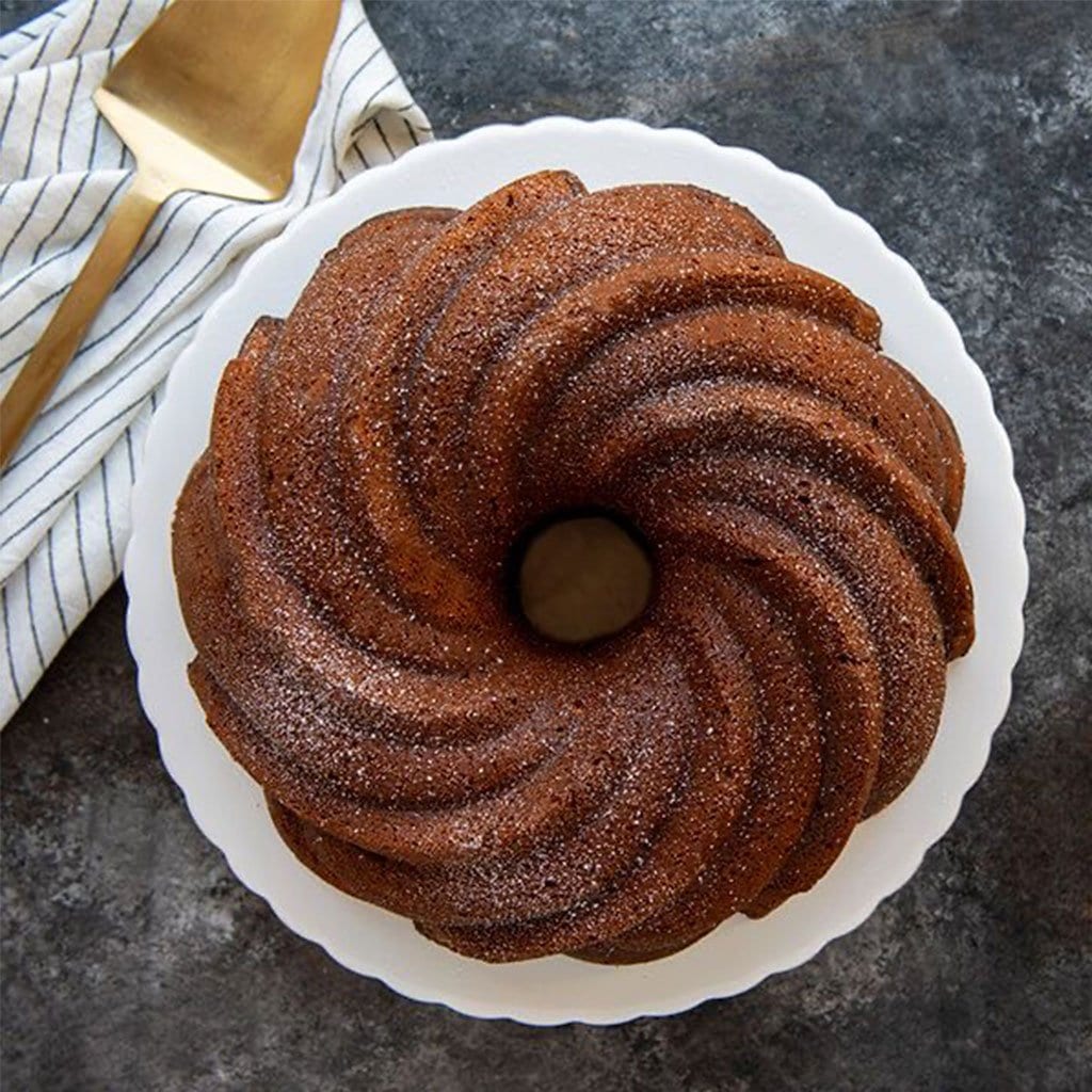 El molde bundt Swirl de Nordic Ware es un molde precioso y de lo más elegante en formas. Es una evolución del tradicional y más popular molde Heritage, haciendo de sus espirales unas curvas más sinuosas y finas.
