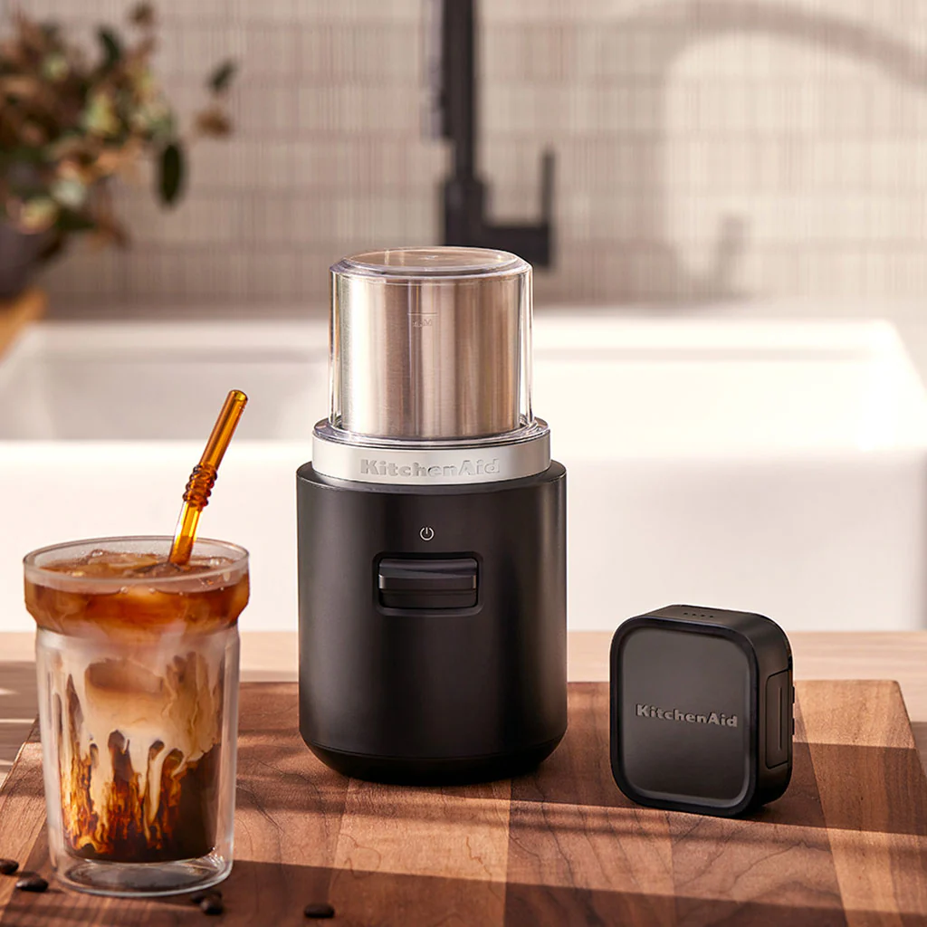 El Molinillo inalámbrico Go 12V KitchenAid funciona con batería de iones de litio de 12V y se presenta en dos formatos: