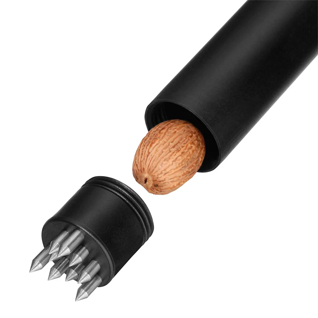 Este molinillo es elegante, de fácil manejo y de lo más eficiente: sus agujas cogen el grano de nuez para que, al girar, ésta gire en las cuchillas que la cortarán.