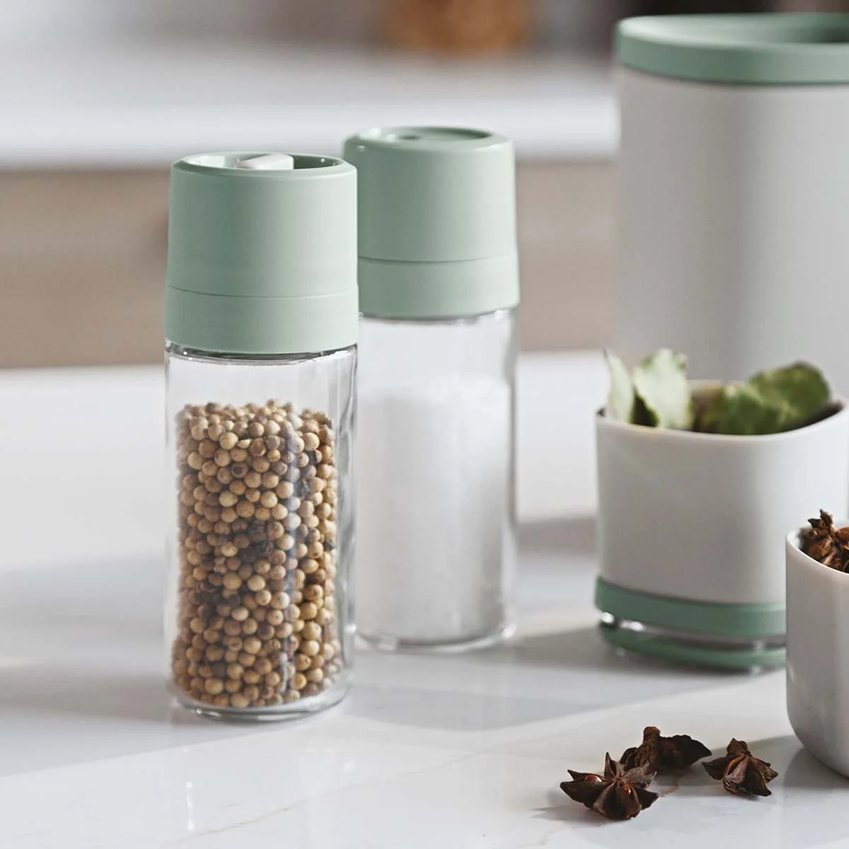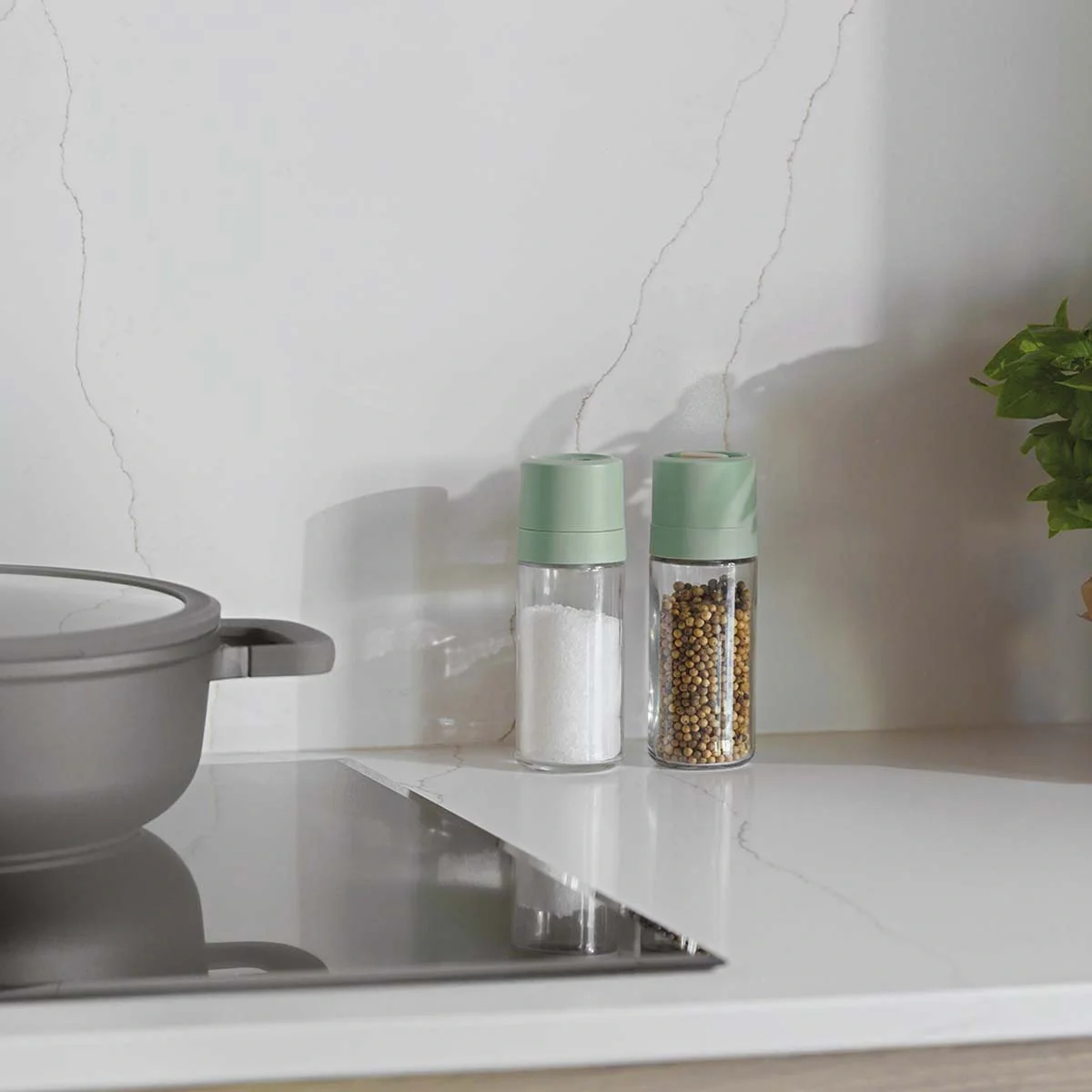 Gracias a su mecanismo de moler de cerámica ajustable, puedes escoger si quieres la sal más gruesa o más fina. ¿A que es genial? Además, las dos piezas están fabricadas con vidrio y plástico reciclable, con lo que son de lo más resistentes.