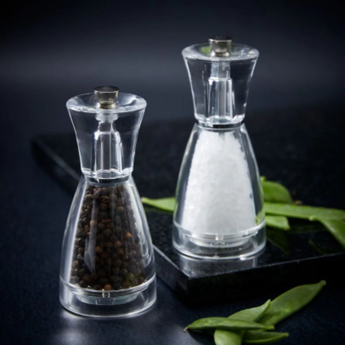 Fabricados en metacrilato, son unos molinillos tan duraderos como atractivos, con lo que los tendrás mucho tiempo contigo en casa. Además, gracias a su diseño transparente, puedes visualizar el contenido de su interior y saber así cuándo es necesario rellenarlos. Y si quieres adquirir ambos molinillos (sal y pimienta), no tendrás que preocuparte, porque podrás identificar su contenido gracias a su transparencia, así como a los marcadores de uso con la S o la P, ubicadas en la rosca superior.