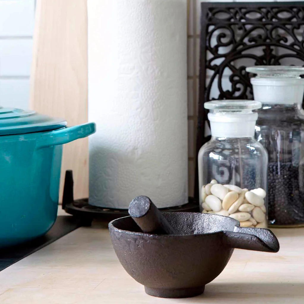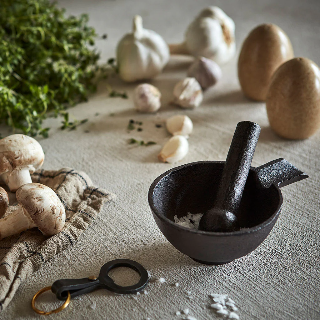 El Mortero de hierro forjado Frej de Affari of Sweden es una pieza bonita y funcional. Fabricado en hierro forjado, tanto el mortero como el pistilo son duraderos y resistentes. Su diseño minimalista de estilo escandinavo se adapta a cualquier ambiente. Y su pequeño tamaño lo hace ideal para majar aromáticas, frutos secos o especias de una forma cómoda y muy agradable.