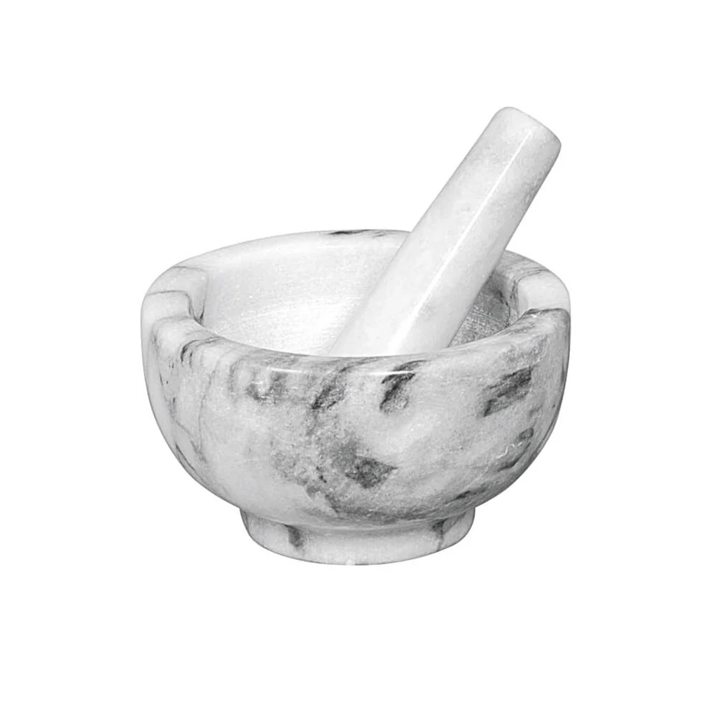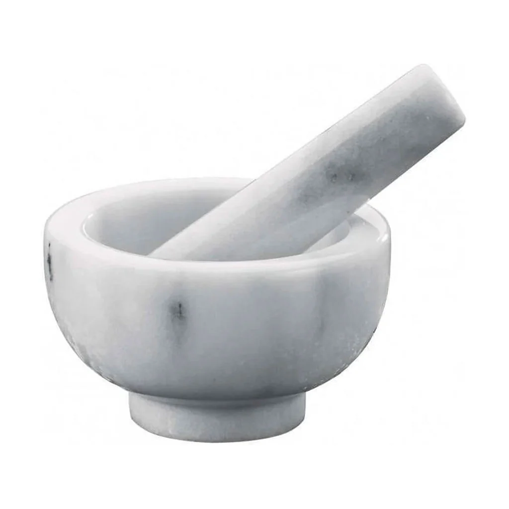 - Mortero y maza de mármol.
