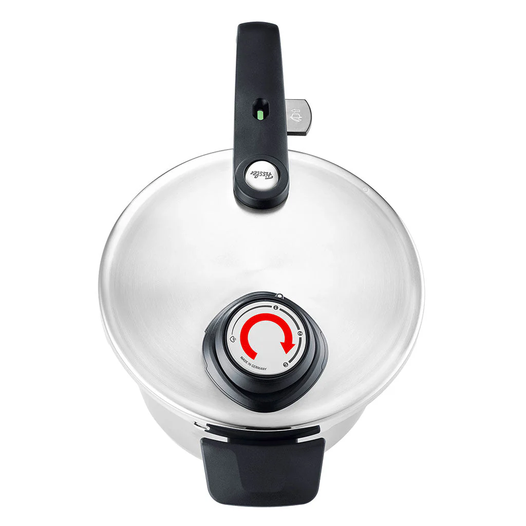 Sus cuatro ajustes para una cocción suave o rápida le ayudan a cocinar todo a la perfección y a conservar las vitaminas importantes. También dispone de una función de cocción al vapor sin presión, de modo que podrás echar un vistazo a los alimentos, removerlos y sazonarlos en cualquier momento. Con la válvula de cocción con sistema de semáforo tricolor, cocinar con la olla a presión es simple y seguro.