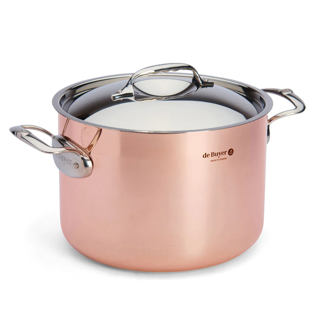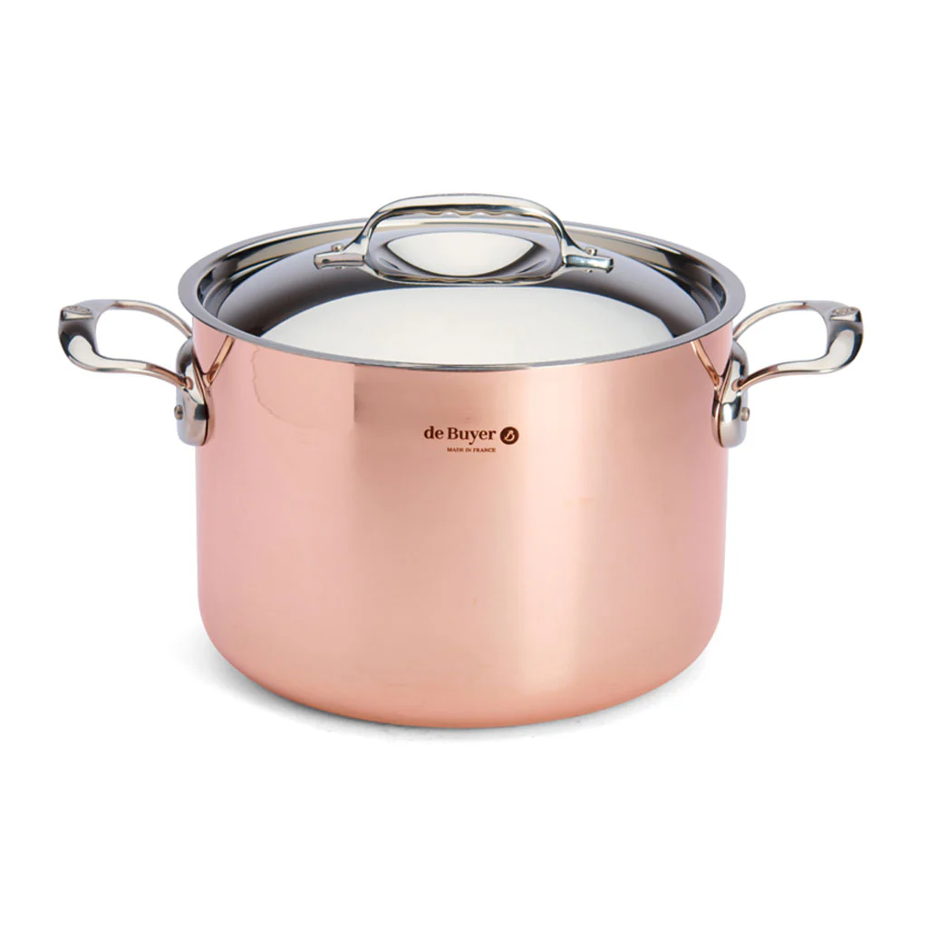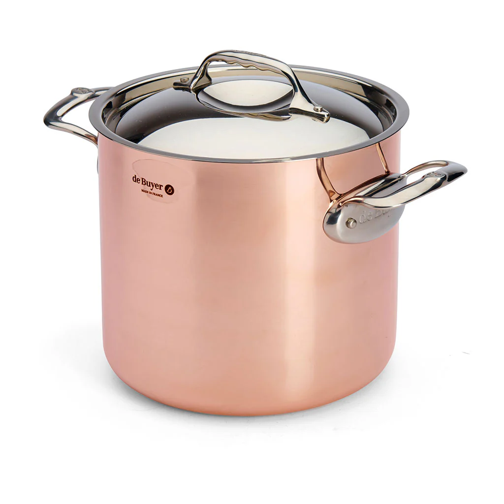La Olla alta de cobre Prima Matera De Buyer (inducción) se presenta en dos formatos, ambos con tapa de acero inoxidable:
