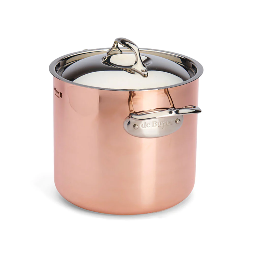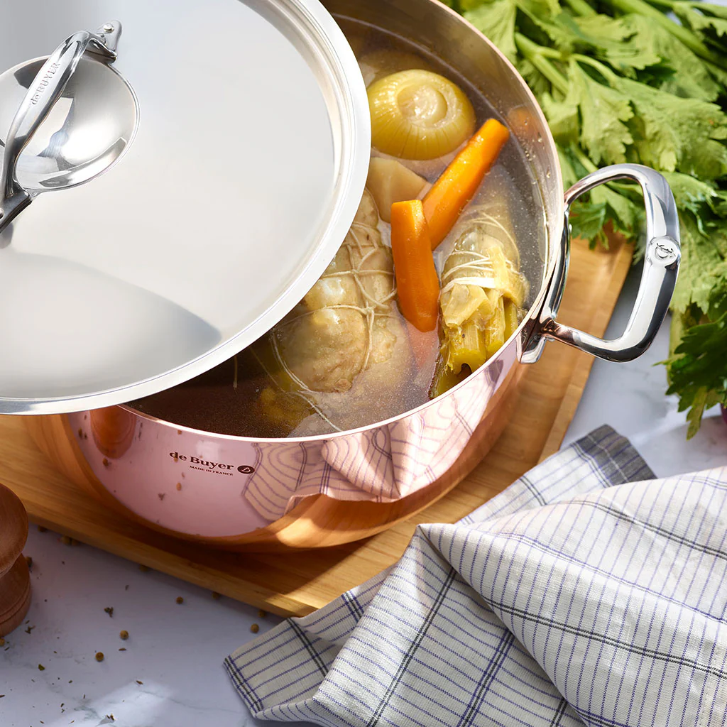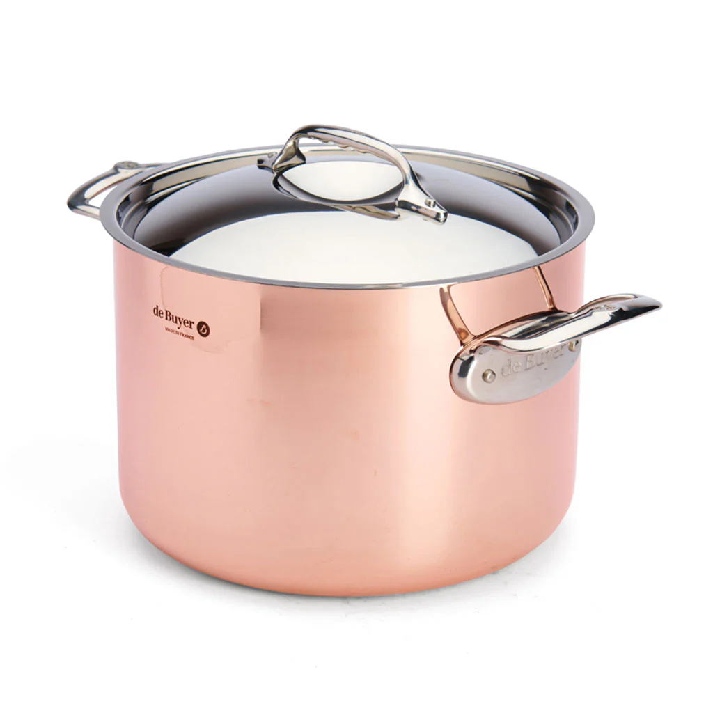 La Olla alta de cobre Prima Matera De Buyer (inducción) se presenta en dos formatos, ambos con tapa de acero inoxidable: