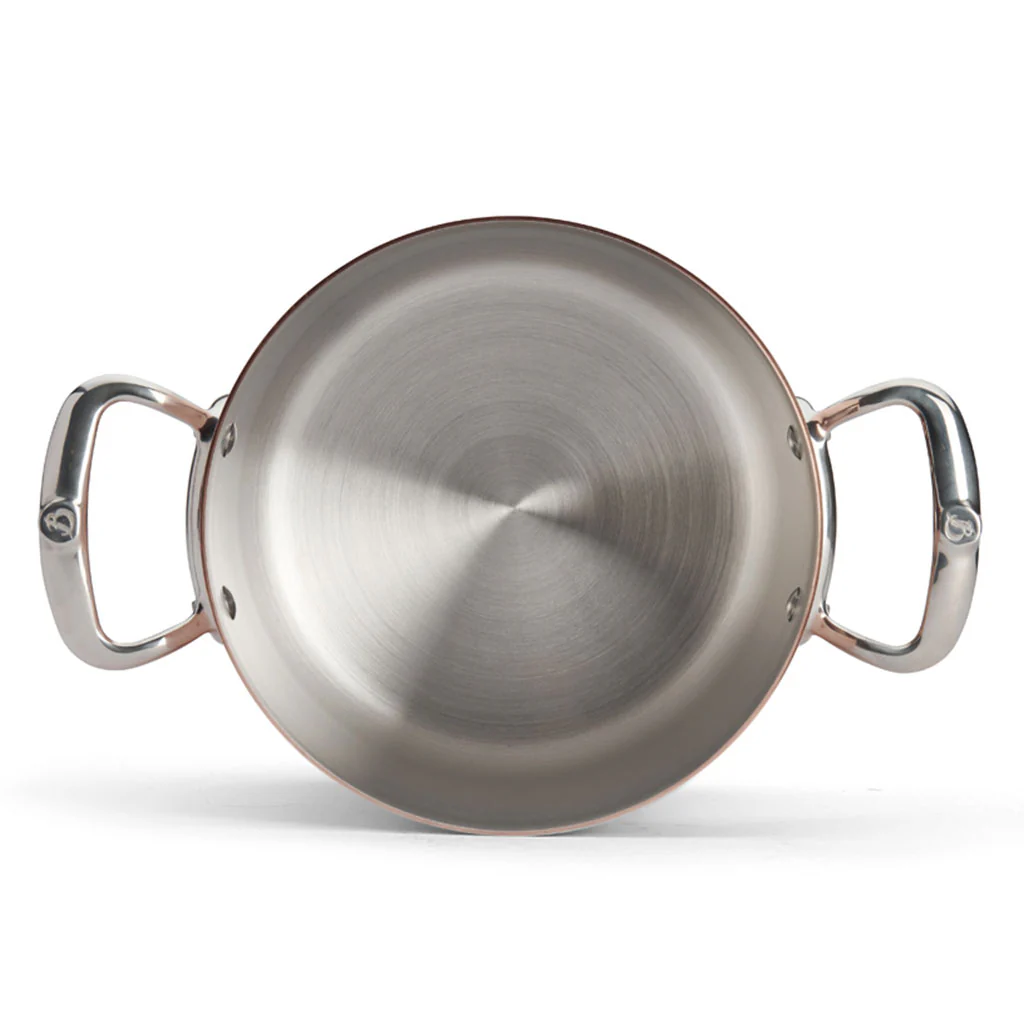- El 90% de cobre en el exterior garantiza una excelente conductividad térmica, superior al hierro y al acero inoxidable multicapa, para un control perfecto de la cocción y unos resultados maravillosos. La transmisión perfecta del calor y la garantía de una temperatura constante, hacen que sea un material con un comportamiento extraordinario en la cocina, incluso a fuego bajo.