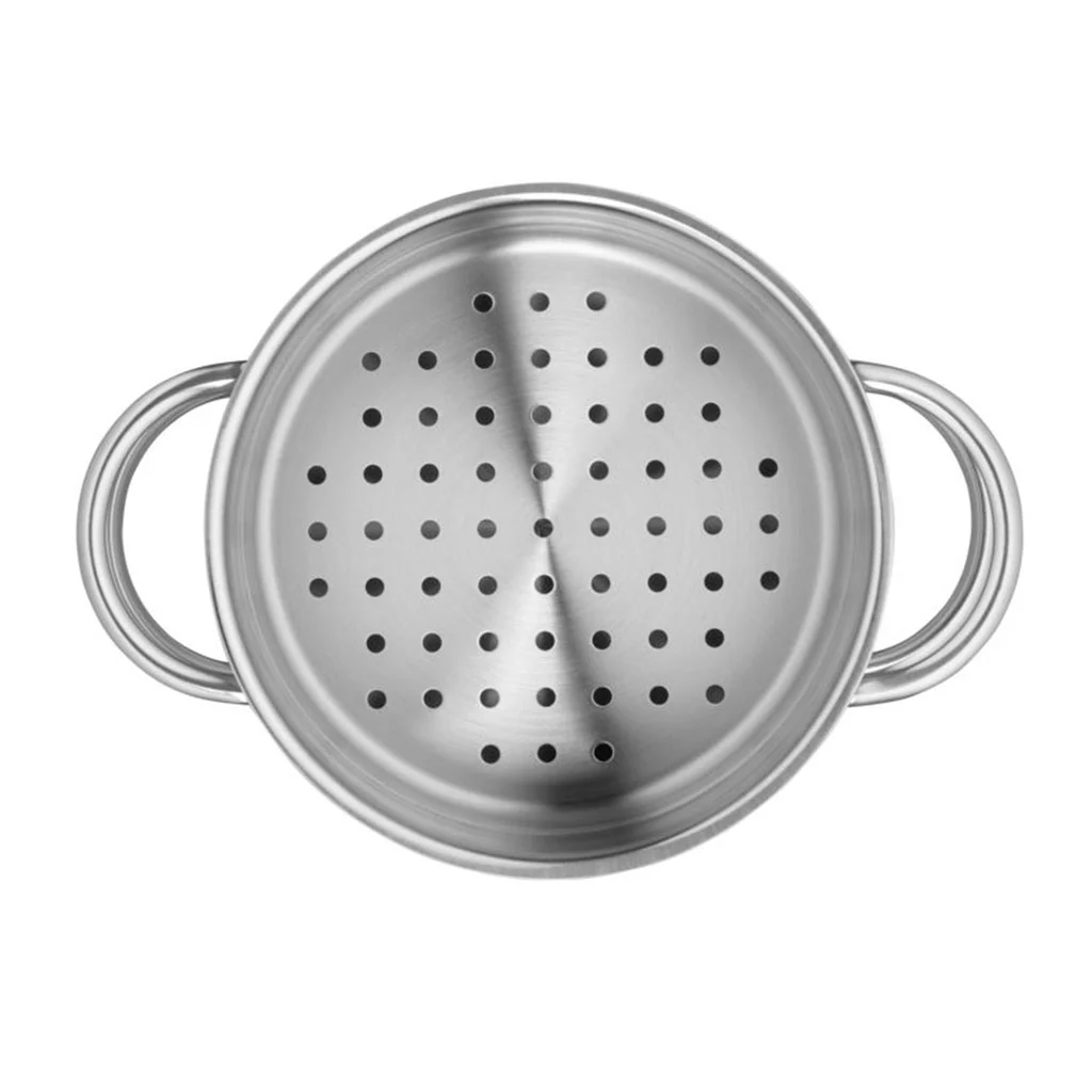 Con una estética muy elegante, este set de cazuela con vaporera y tapa está fabricado totalmente en acero inoxidable Cromargan® 18/10. Su fondo difusor TransTherm te garantiza un rápido calentamiento y una cocción muy eficiente, por lo que te ayudará a reducir el consumo energético.