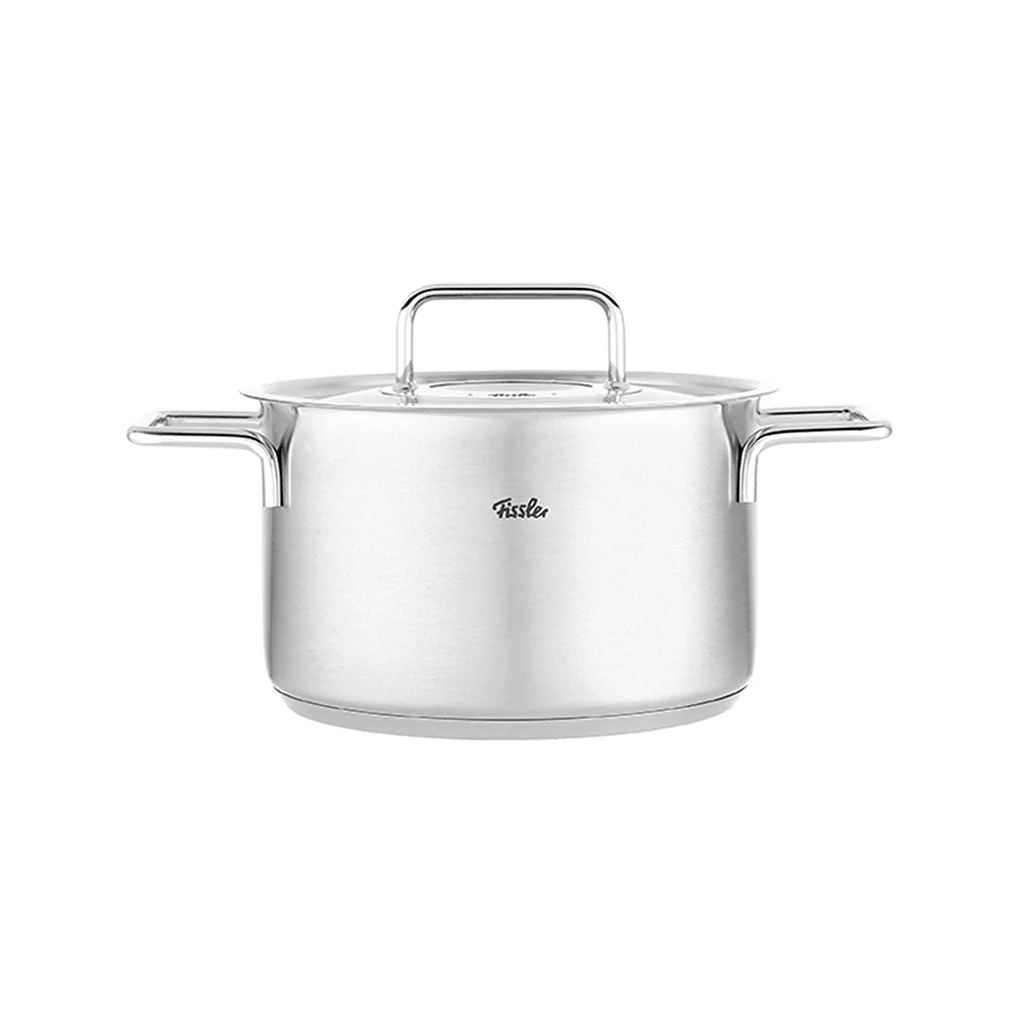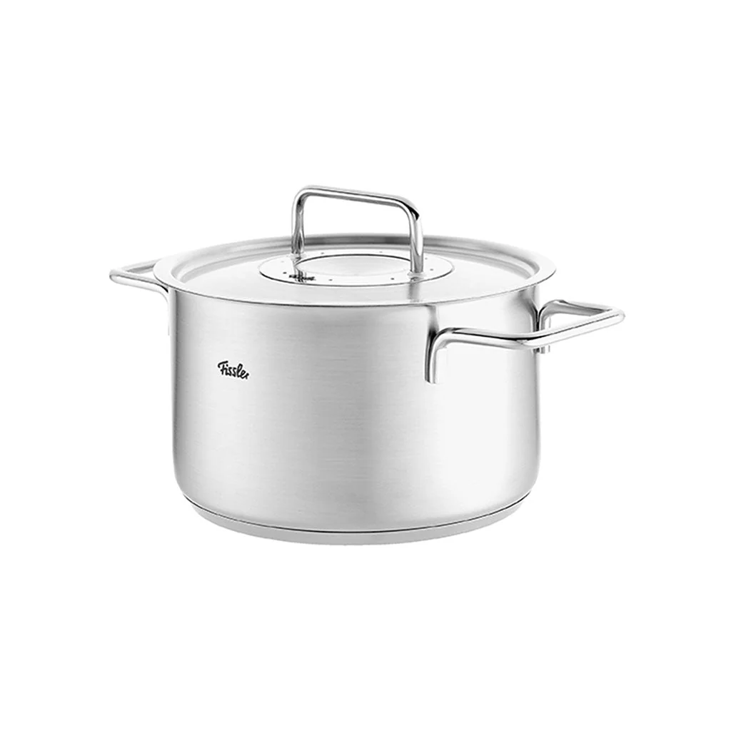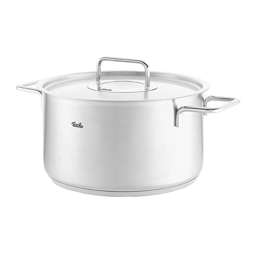 Esta olla, en los tres formatos en los que está disponible, forma parte de la batería de 4 piezas con tapa de acero inoxidable y de la batería de 5 piezas con tapa de acero de la colección Pure de Fissler. Disfruta de esta olla tan funcional y todoterreno: funciona con inducción, con vitrocerámica, apta para horno y también para lavavajillas. ¿Qué más se le puede pedir a una olla?