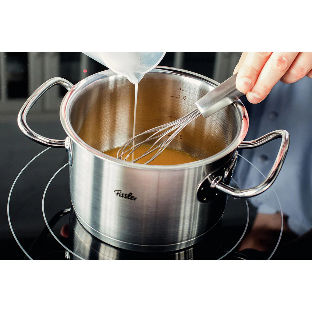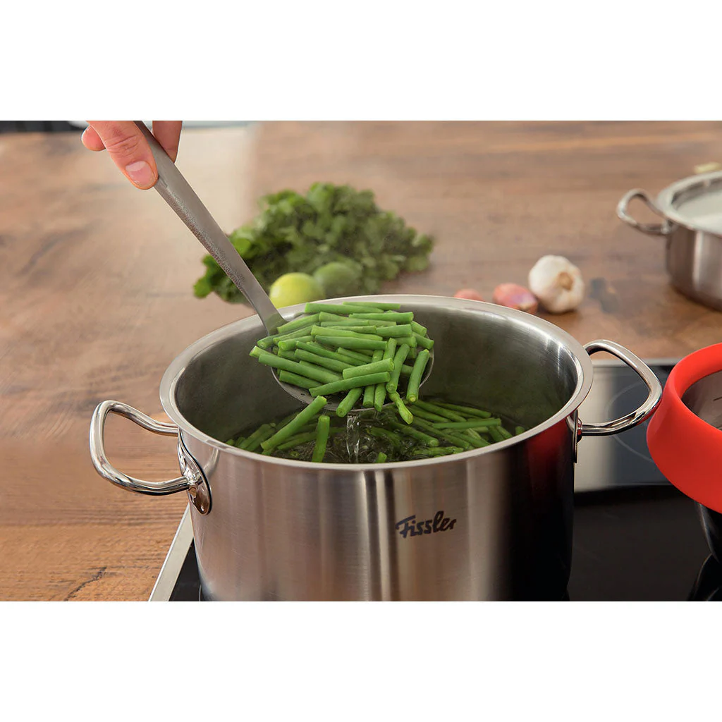 La olla de acero inoxidable con tapa Original-Profi Collection® de Fissler está disponible en varios tamaños y capacidades para que puedas elegir aquella que se ajusta más a las necesidades reales de tu cocina. No es ninguna casualidad que esta olla forme parte de la batería de cocina de la colección Original-Profi: ¡es que es lo más! Es una olla muy versátil que puede utilizarse para hervir, preparar guisos o incluso salsas o cremas.