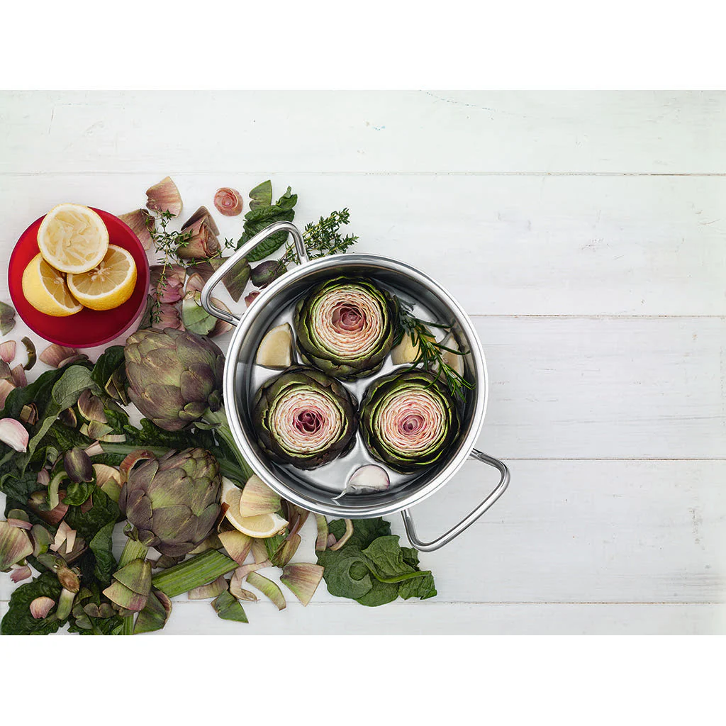 • Es apta para todo tipo de cocinas, incluidas las de inducción, y garantiza una distribución óptima del calor.