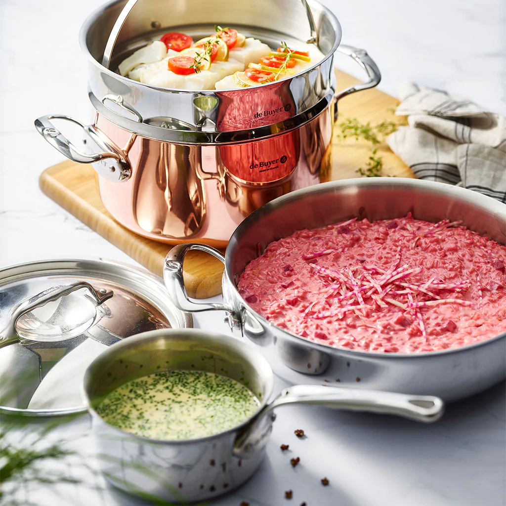 En 2010, De Buyer ideó la primera y única línea de utensilios de cobre macizo en el mundo compatible con la inducción, suponiendo una revolución tecnológica para este material icónico en la cocina francesa. La colección más elegante de De Buyer está formada por piezas únicas de diseño atemporal y se distingue por: