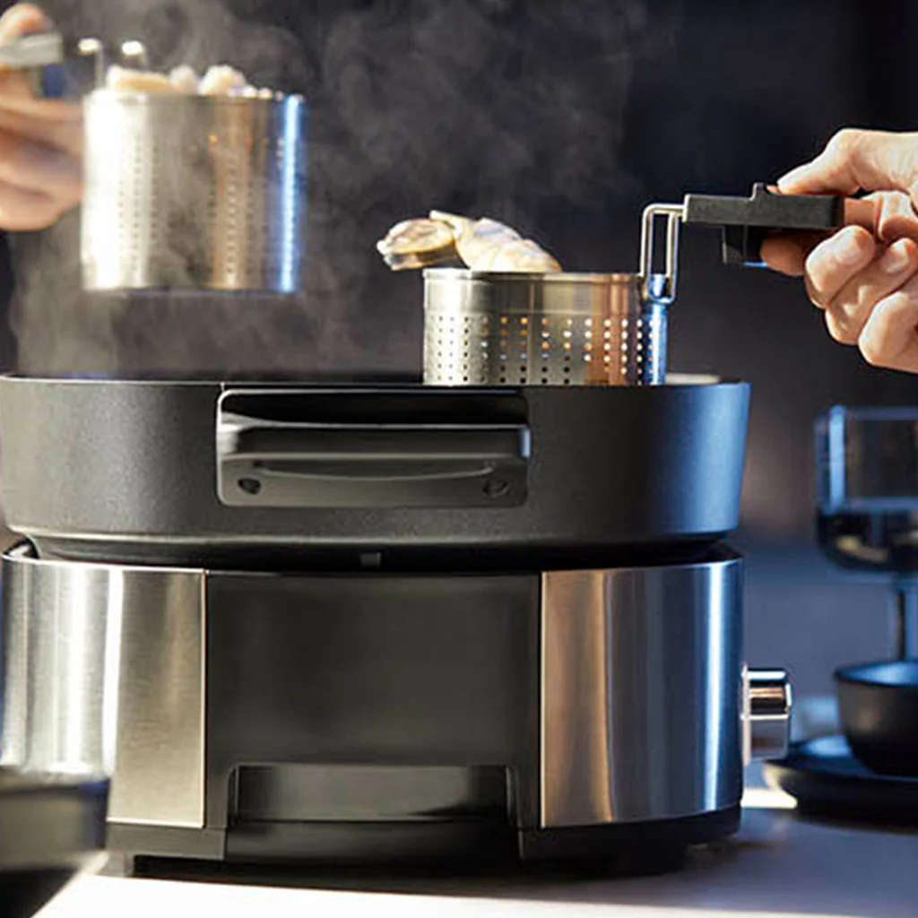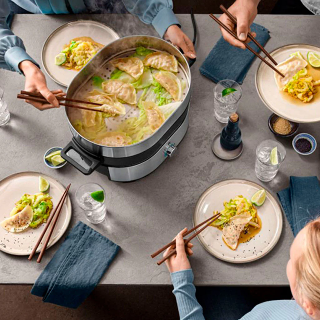 Imagina sumergir tus ingredientes favoritos en un caldo caliente, o preparar unas gyozas al vapor en la cocción de ese caldo. Podrás disfrutar de una fiesta culinaria de la forma más sencilla y cómoda, sin salir de casa, sin tener que encender el fuego o estar pendiente de que no se enfríe nada, para saborear una comida o cena diferente, divertida, relajada y de lo más sabrosa.