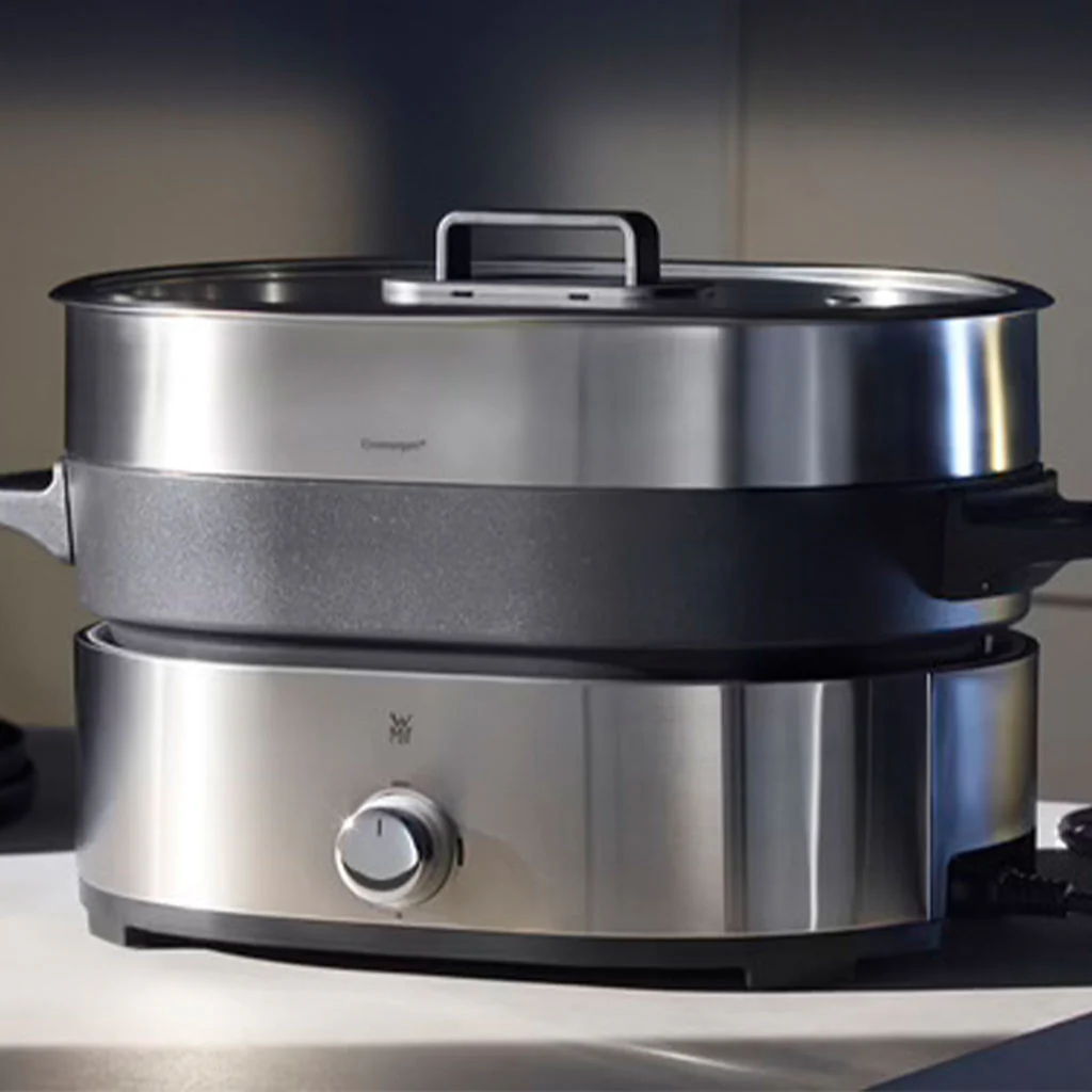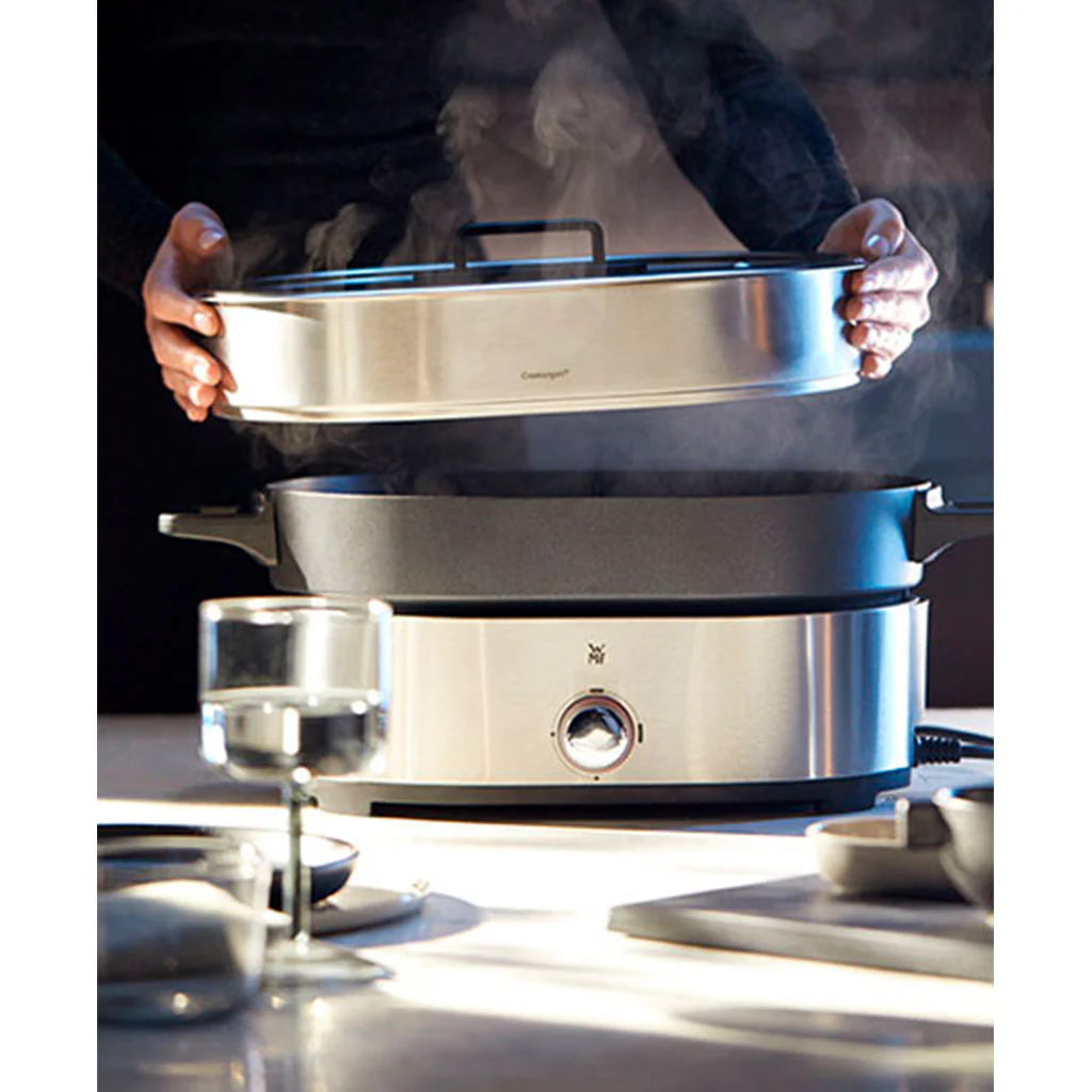 El hot pot de WMF es práctico, seguro y fácil de usar. Su construcción de alta calidad garantiza un perfecto calentamiento y cocción de los alimentos. Su diseño elegante te conquistará y dejará maravillados a tus invitados, mientras disfrutáis de una comida diferente y de lo más sabrosa y divertida.