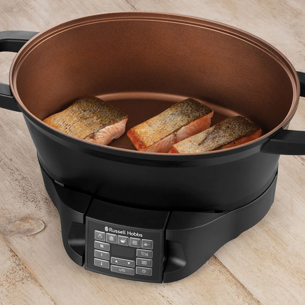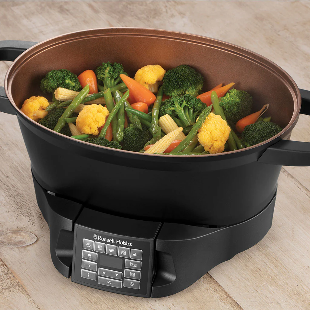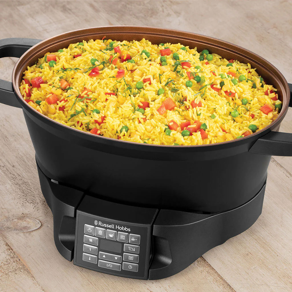 El multicooker Good to Go de Russell Hobbs es la elección perfecta si buscas un electrodoméstico que te permita cocinar una infinita variedad de platos deliciosos con facilidad, comodidad y sin preocupaciones adicionales de limpieza.
