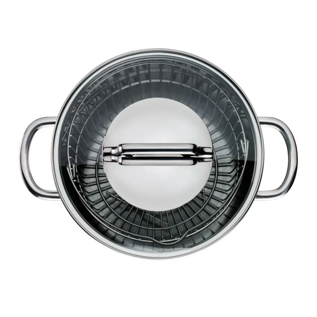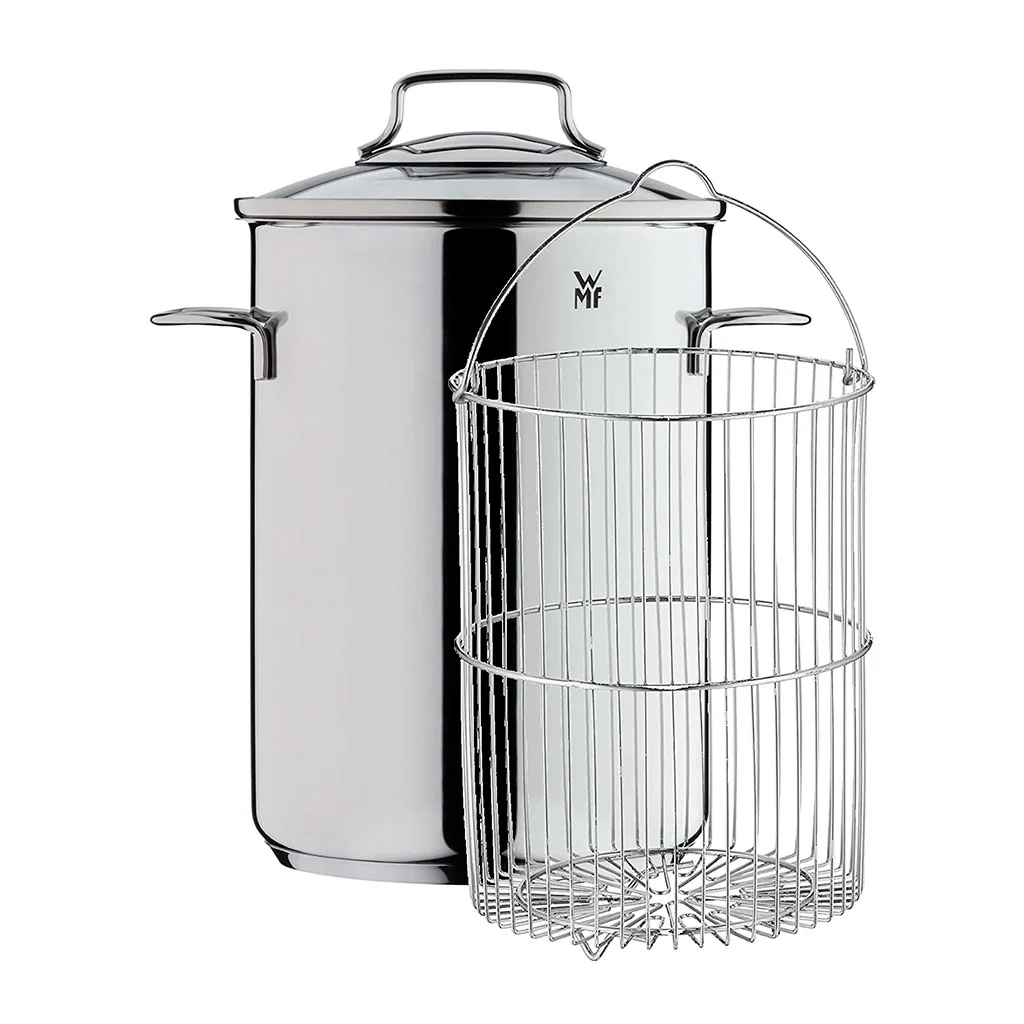 La Olla para espárragos de WMF es una pieza muy versátil, que te dará mucho juego en la cocina. Gracias a su altura y a su gran capacidad de 5 litros, este set de tres piezas te facilitará como ninguno la perfecta cocción de los espárragos, para disfrutar de todos sus beneficios con gran comodidad.