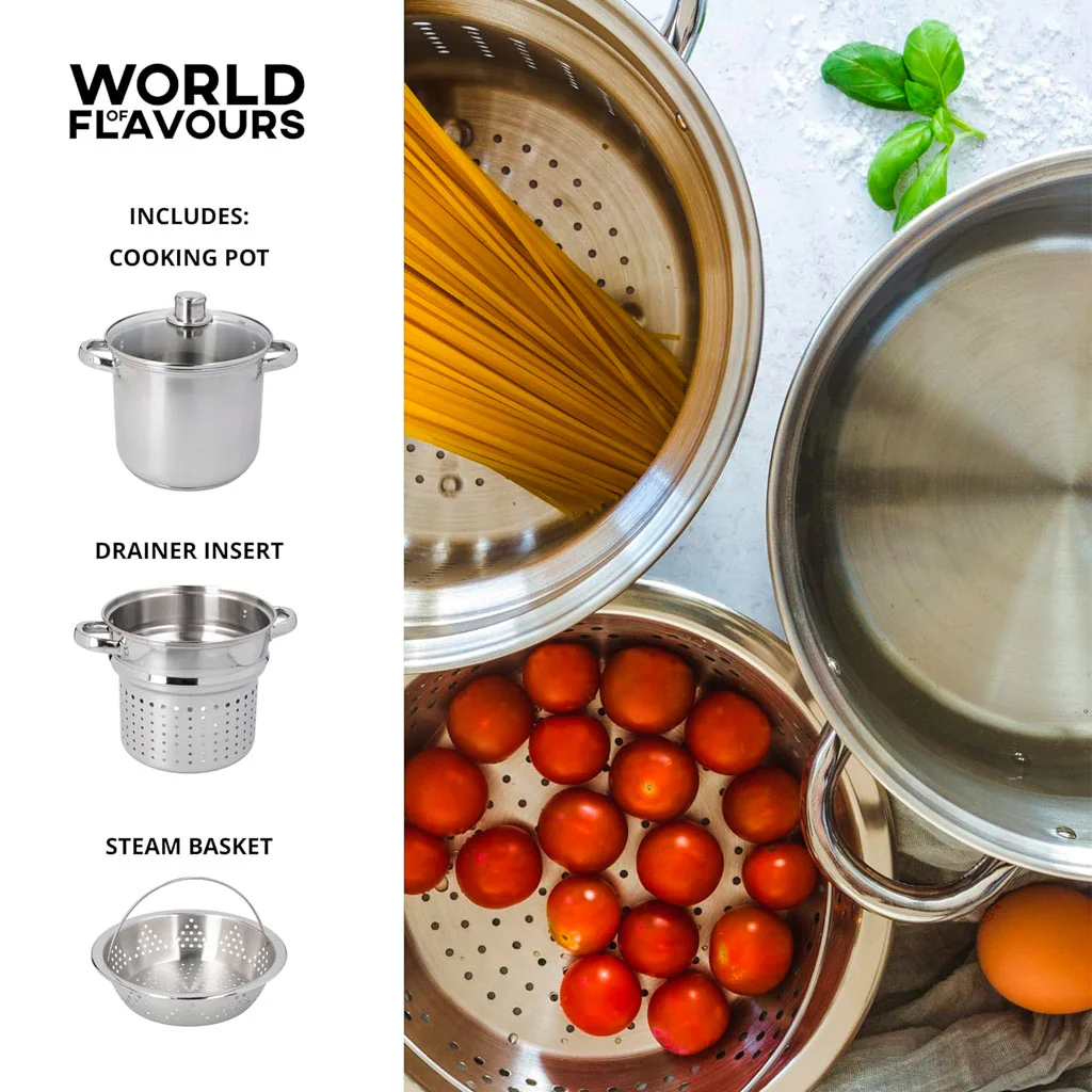 Olla para pasta y vapor 4 piezas 7,5L KitchenCraft