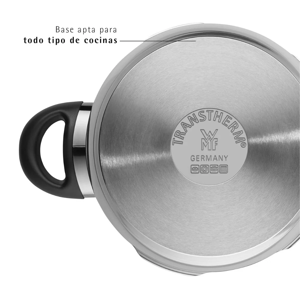 - Con base TransTherm® apta para todo tipo de cocinas, incluidas las de inducción.