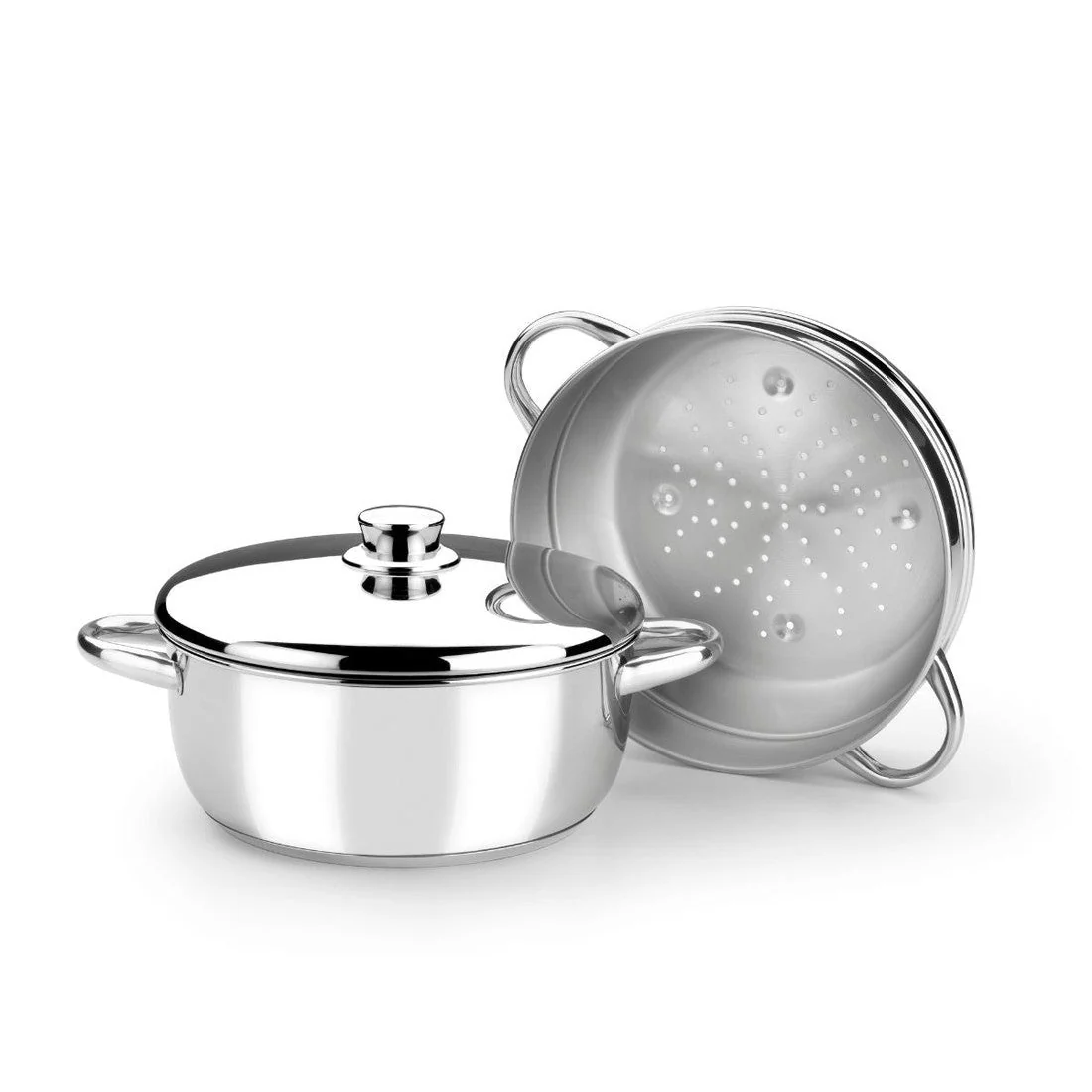 Las asas de acero inoxidable son sólidas, robustas y ofrecen un agarre seguro, facilitando el manejo de la olla incluso cuando está caliente. Además, la versatilidad del set permite utilizar las piezas de forma independiente; puedes emplear la olla base para tus guisos o pastas, mientras que la parte superior del vaporizador es perfecta para cocinar al vapor, simplemente colocándola sobre la olla con 2 dedos de agua hirviendo.