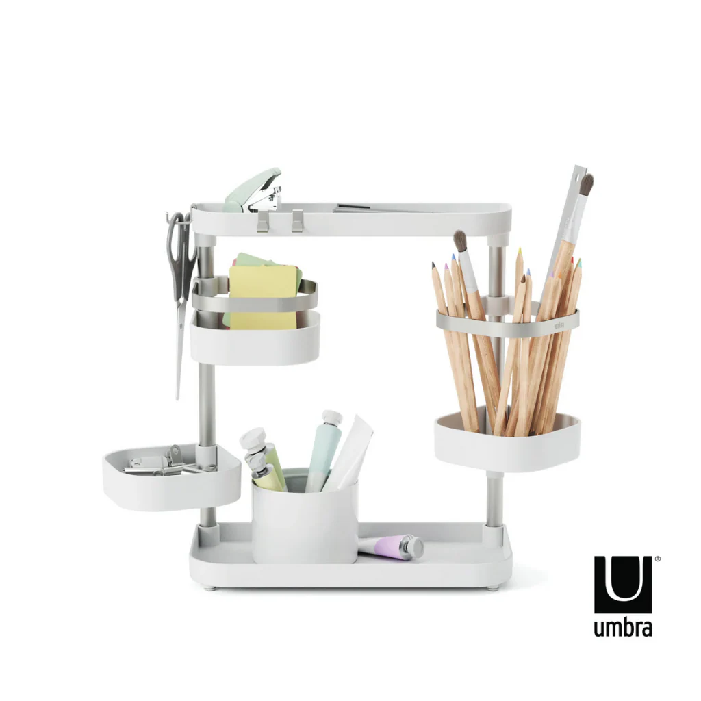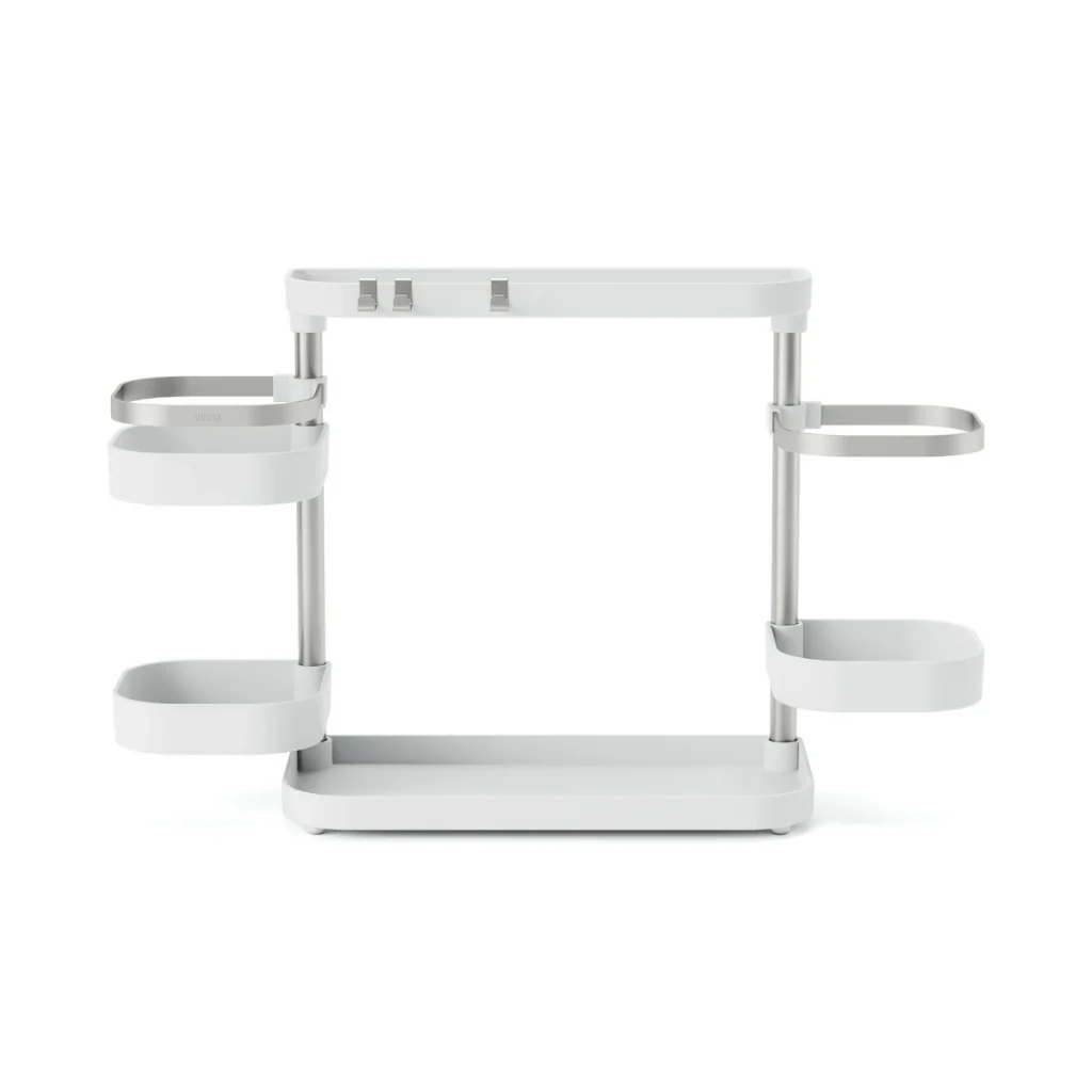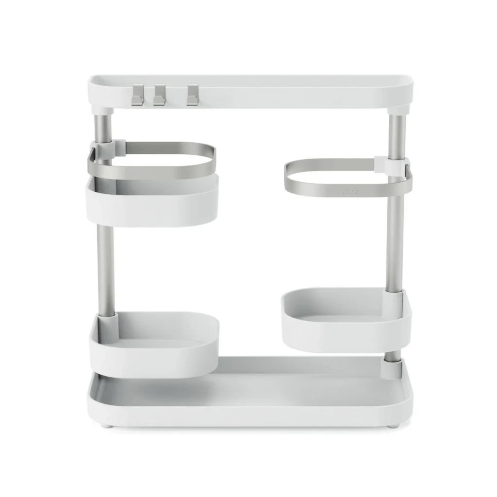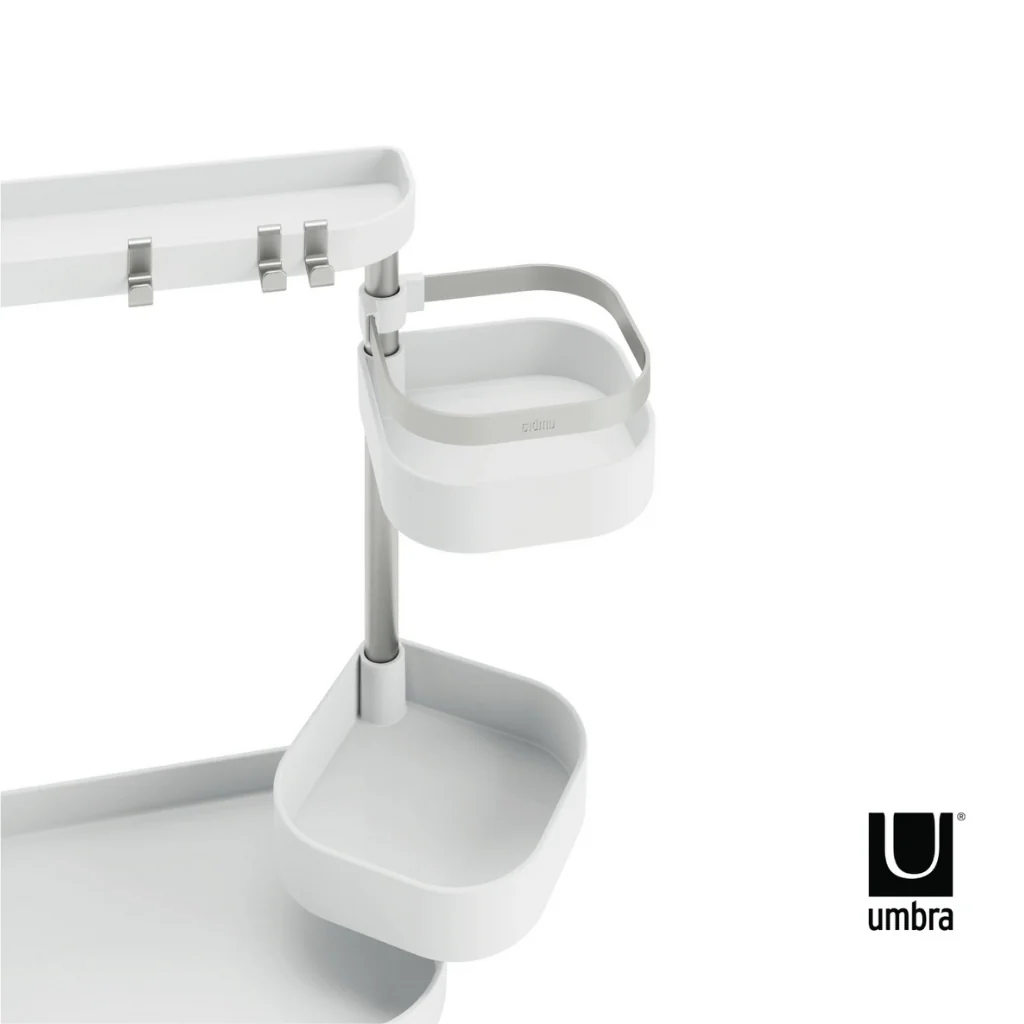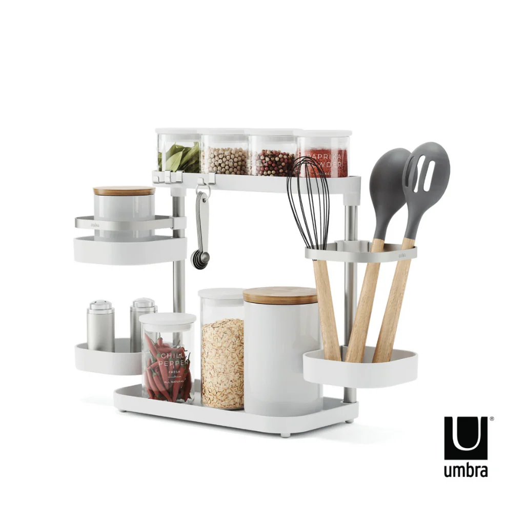 Con el Organizador de cocina Umbra, ¡se acabaron los problemas de espacio en la cocina! Este práctico y versátil soporte conseguirá que tengas despejada la encimera y ordenados tus imprescindibles. Un organizador minimalista que con sus cinco bandejas te proporciona una gran solución de almacenaje. Es muy fácil de instalar y adaptable a tus necesidades de espacio. ¡Es ideal!