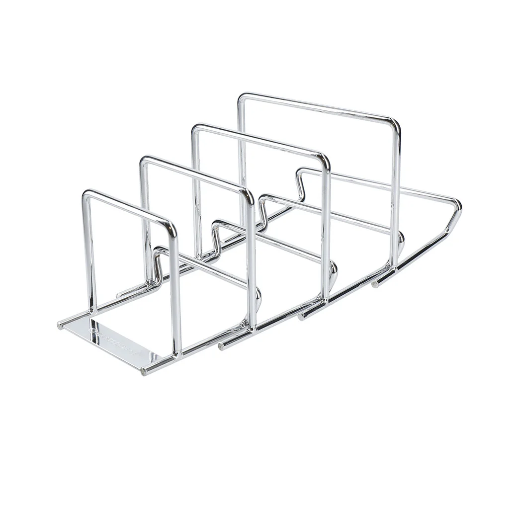 Completamente abierto, tiene capacidad para colocar cuatro tapas, sartenes o tablas de varias medidas. Plegado tan solo ocupa una cuarta parte, por lo que no te quitará apenas espacio cuando no lo utilices. Un organizador metálico muy robusto y resistente, perfecto para los armarios de la cocina.