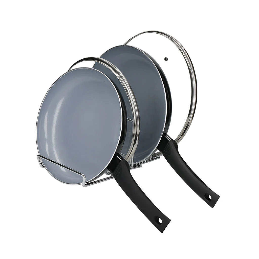 - Organizador metálico extensible para sartenes, tablas y tapas.