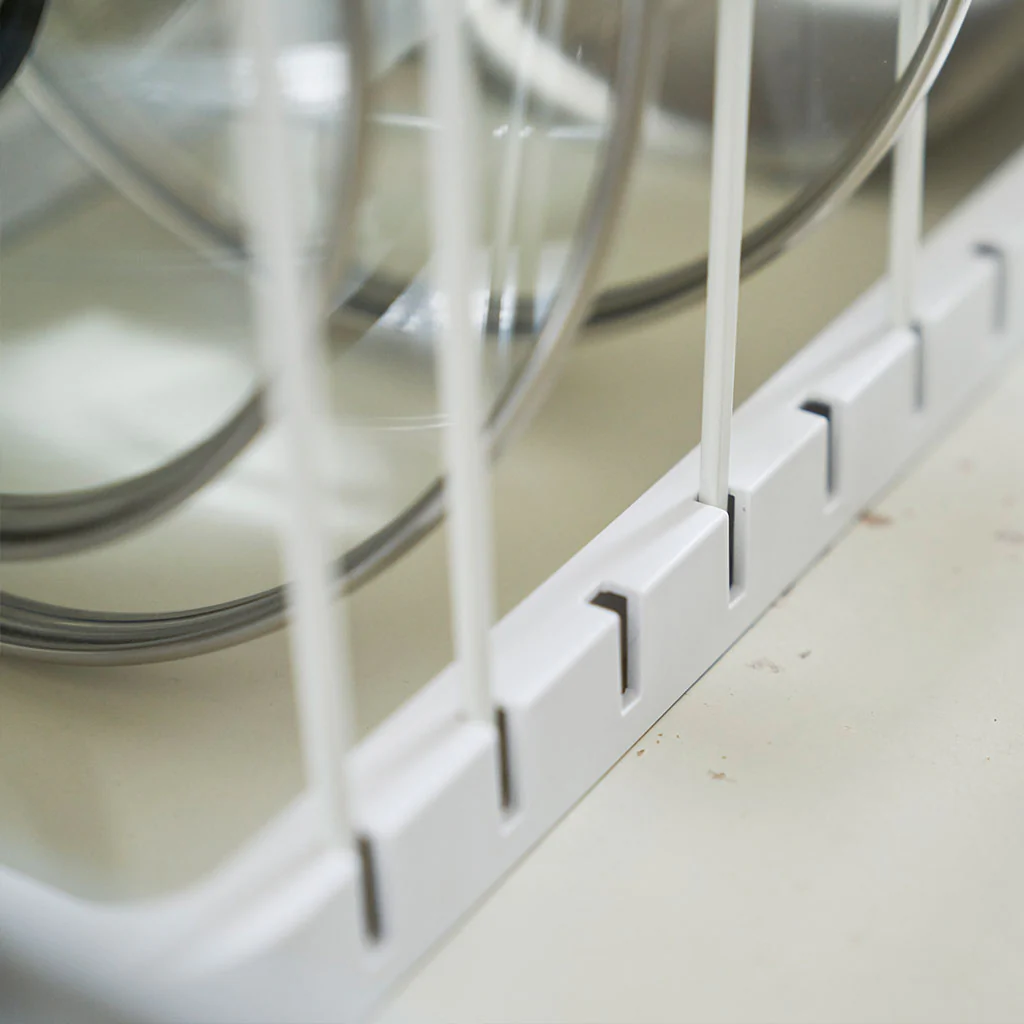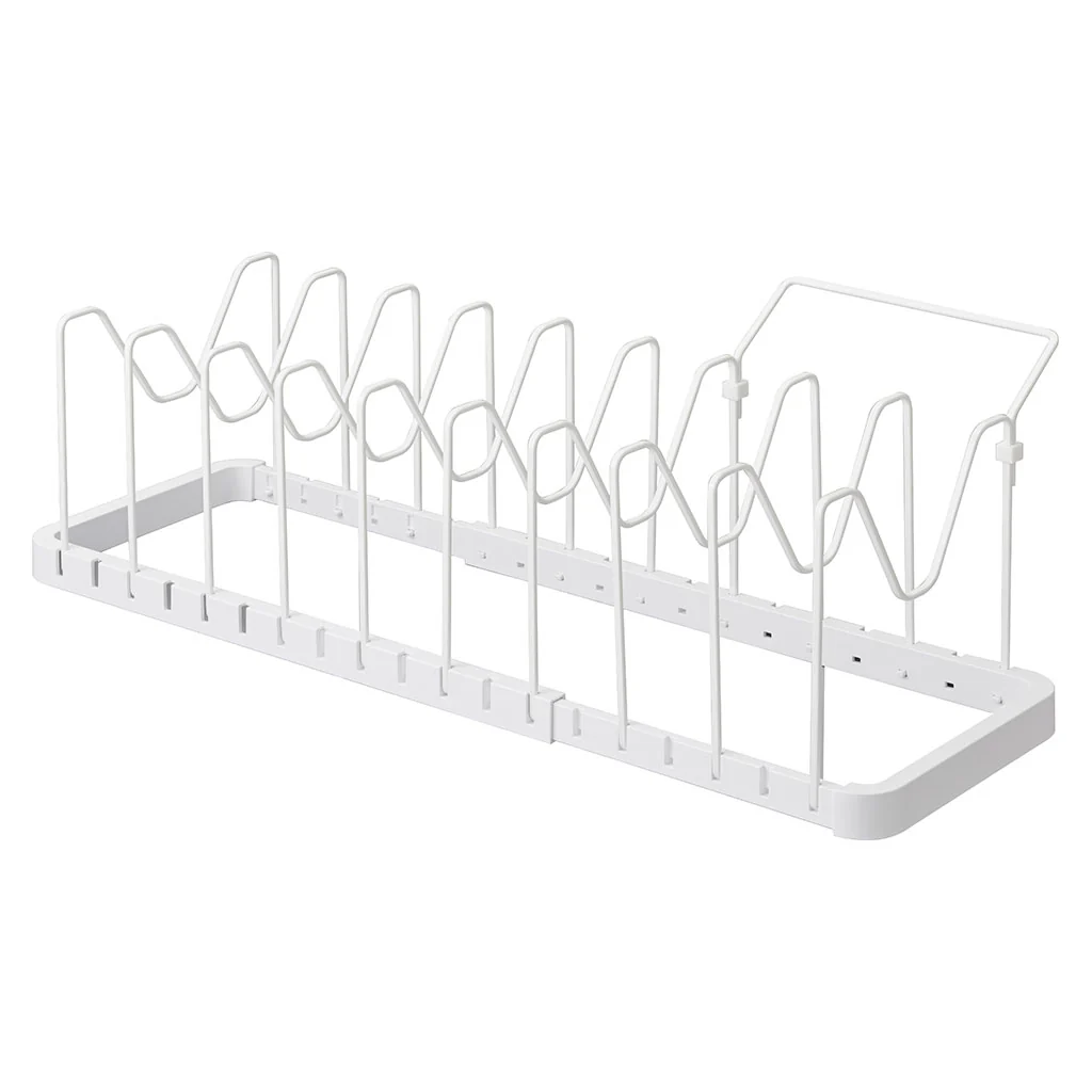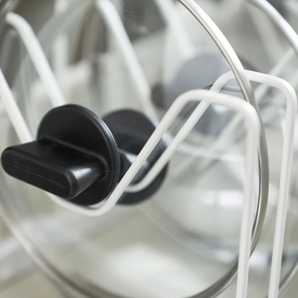¡Con el Organizador para tapas y sartenes extensible Yamazaki olvídate del desorden en la cocina! Este organizador es un soporte ajustable ideal para guardar cualquier tamaño de olla, sartén o tapa, sin que se rayen y ocupando el mínimo espacio en el armario o la encimera. ¡Te ayudará a aprovechar cada rincón!