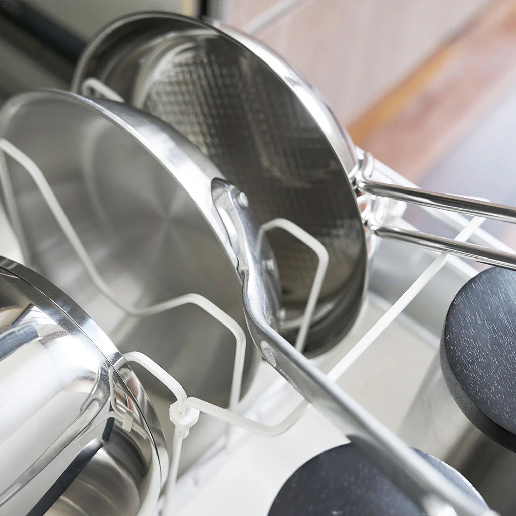 Por qué nos gusta el Organizador para tapas y sartenes extensible Yamazaki