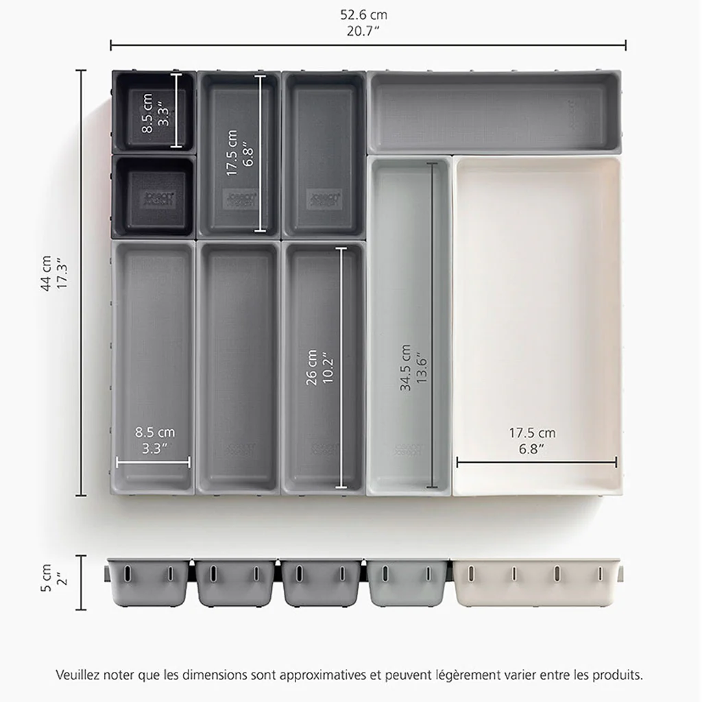 - Diseño modular personalizable para adaptarse al espacio del cajón.
