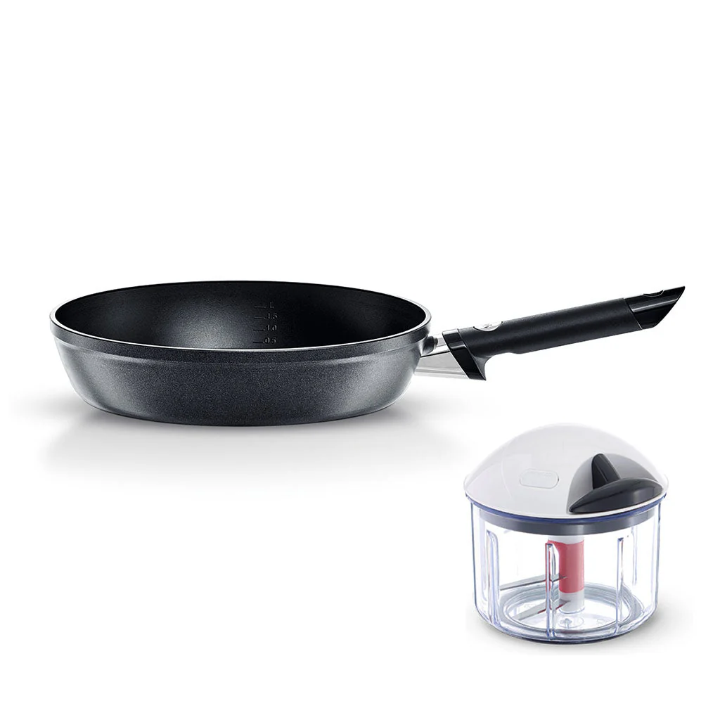 - Pack de sartén antiadherente de 28 cm + regalo de la picadora Finecut de Fissler.