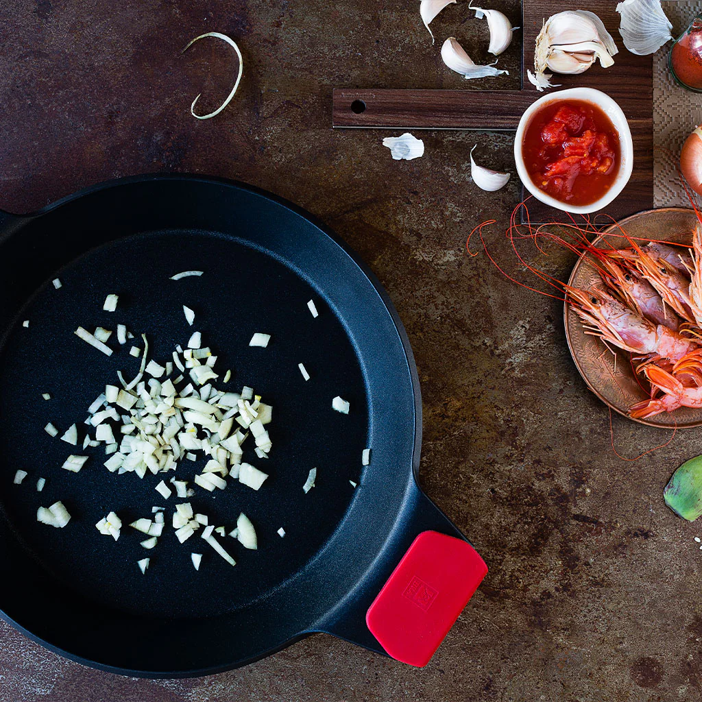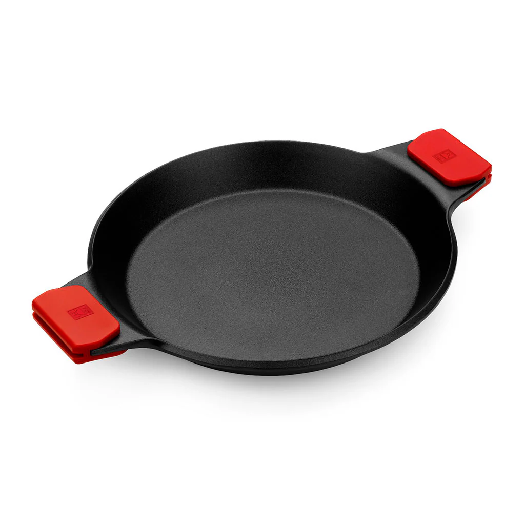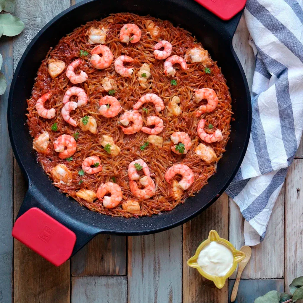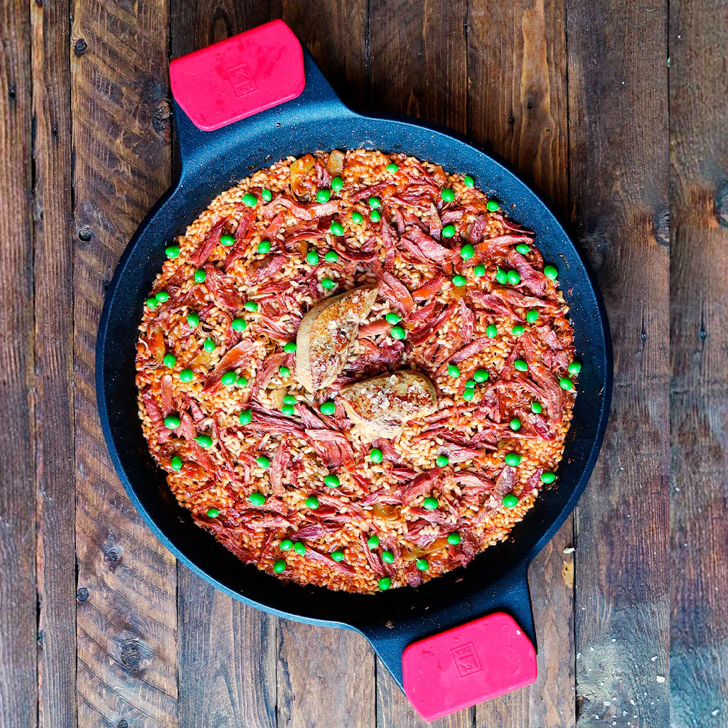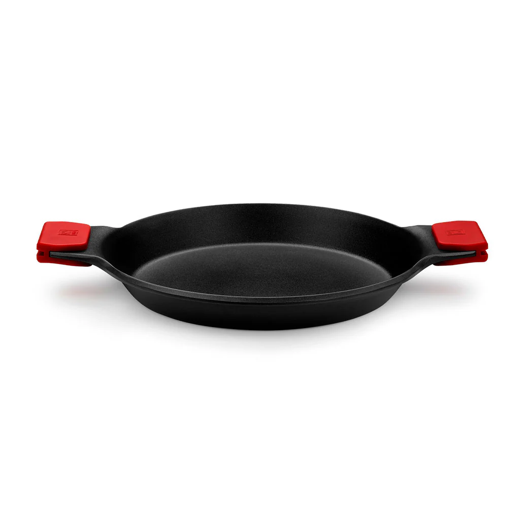 - Dispone de dos asas de silicona que te permiten coger la paellera sin quemarte y poder ponerla al horno para terminar la cocción.