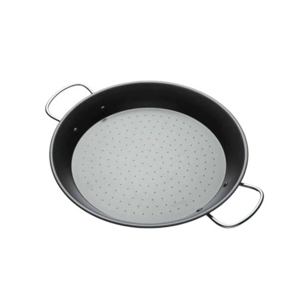 Ya puedes empezar a preparar los pimientos frescos y crujientes, tomates jugosos, chorizo fragante y sabrosos frutos del mar, porque esta paellera te permitirá preparar deliciosas paellas de la forma más práctica y en cantidad: es una paellera de 32 cm de diámetro (41,5 cm con asas), ligera, con un cuerpo interior de acero carbono (hierro) para asegurar alcanzar una buena temperatura, y con un recubrimiento antiadherente para asegurarte que no se pegará nada.