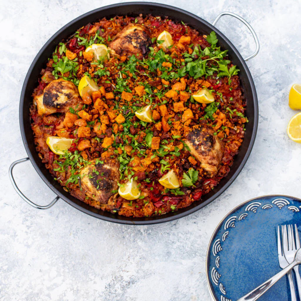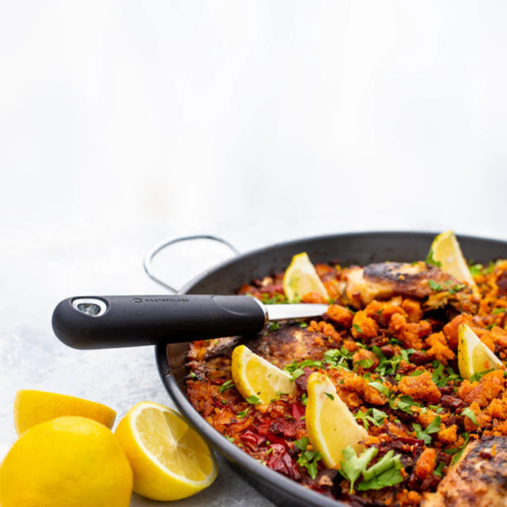 Esta belleza antiadherente tiene el tamaño perfecto para porciones compartidas de paella, ideales para disfrutar con amigos y familiares. ¡Así que comienza a explorar las opciones hoy mismo! Desde probar las versiones más variadas de paella a cocinar una variedad de platos de todo el mundo -desde picantes chiles mexicanos y sabrosos curris del sur de Asia hasta suaves risottos italianos y clásicos desayunos británicos. La única limitación es tu imaginación.