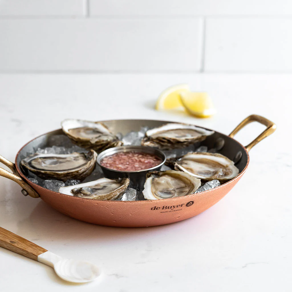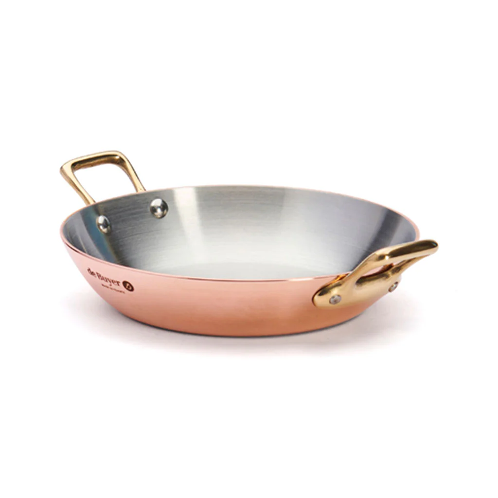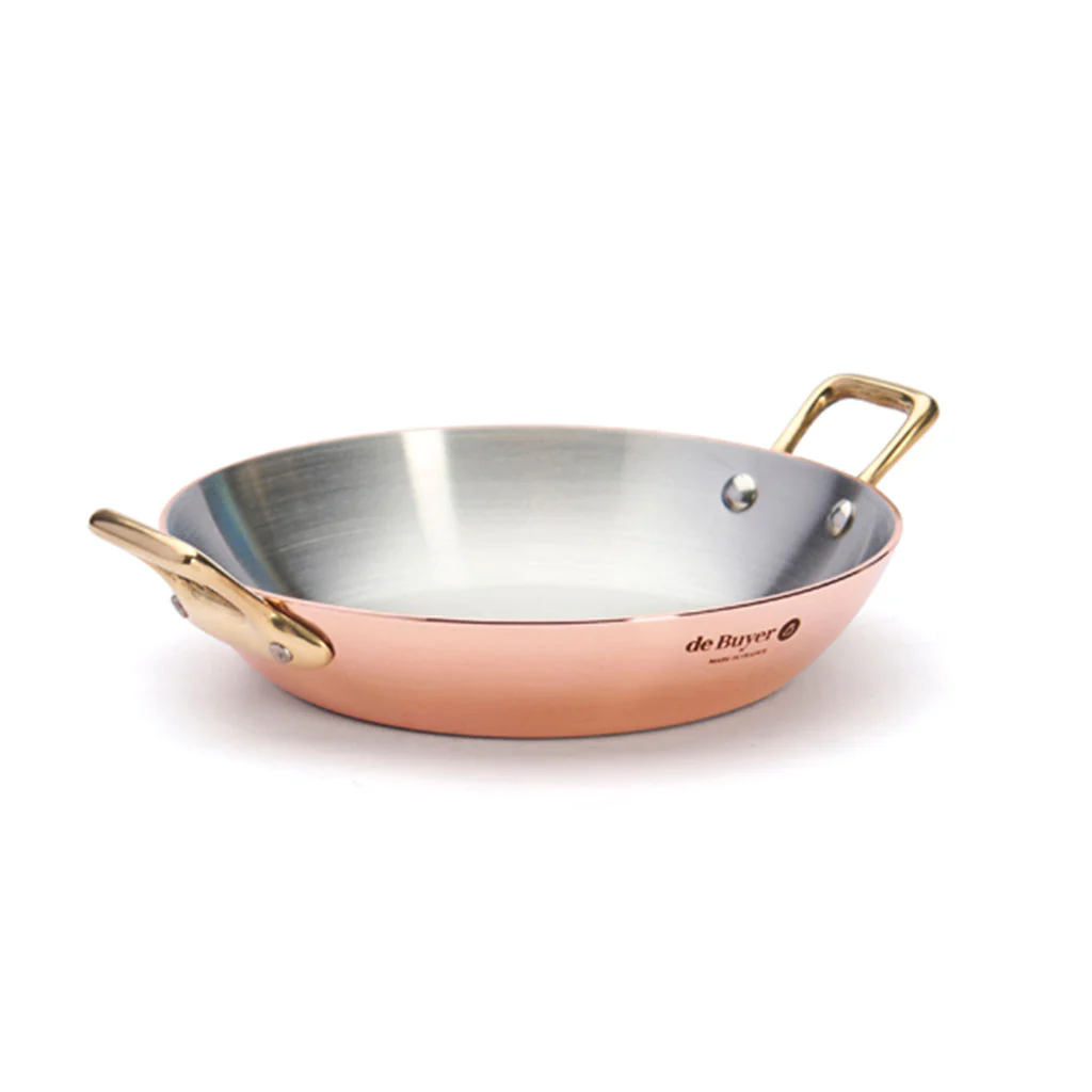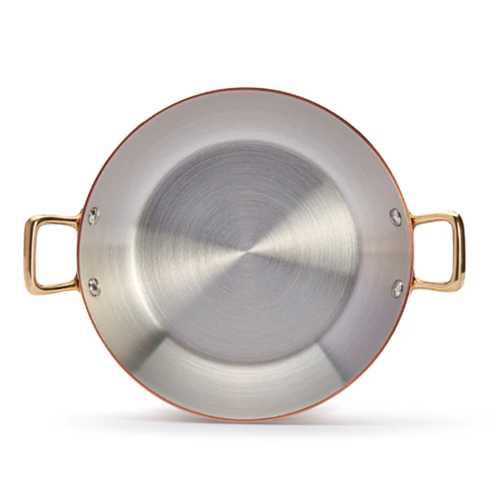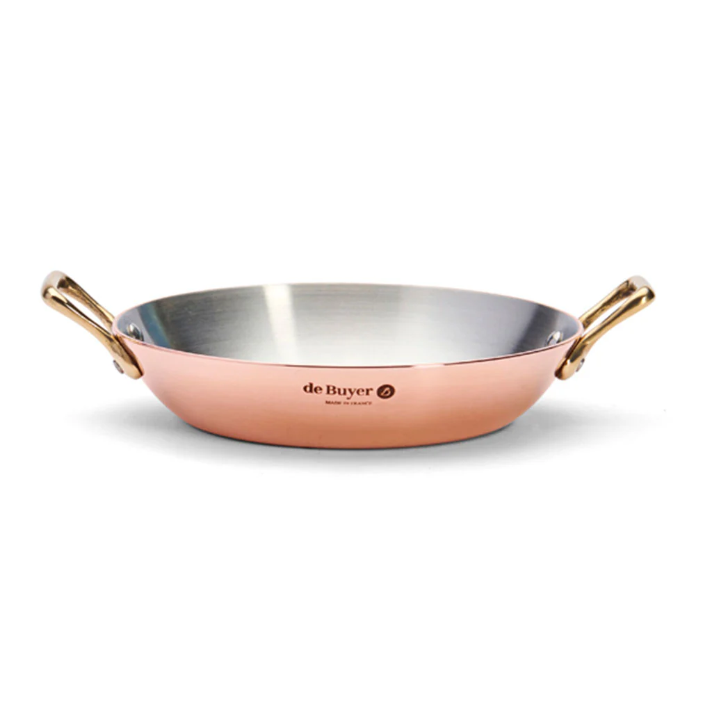 Perfecta, ¡cómo no!, para tus arroces, la Paellera de cobre Inocuivre con asas doradas De Buyer es una pieza ideal para freír, saltear, dorar, cocinar a la plancha carnes, pescados, verduras o mariscos, e incluso para preparar una deliciosa crème brulée de la forma más eficiente, rápida y elegante posible. Perfecta para la cocina y el horno, la excelente conductividad del cobre y su interior de acero inoxidable, te proporcionarán resultados maravillosos.