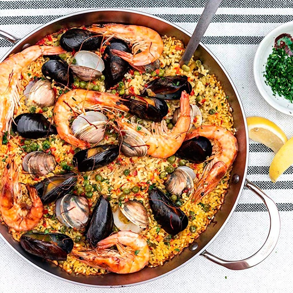 - El hierro de De Buyer distribuye tan bien el calor en toda la superficie que cualquier alimento queda estupendamente cocinado y doradito por igual, por lo que se evita encontrar algunos granos de arroz que queden crudos.