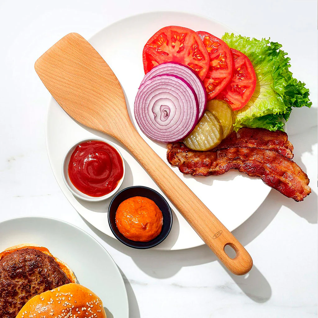 La Pala de madera OXO es un utensilio de lo más útil en la cocina. Tanto por su longitud de 35 cm como por la amplitud de su pala, es ideal para remover, voltear y servir los alimentos. Gracias a sus ligereza, podrás servir la comida con total comodidad y estilo. Una ayuda estupenda para utilizarla con tus sartenes y cazuelas antiadherentes.