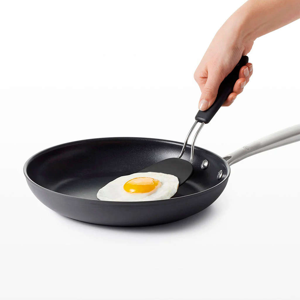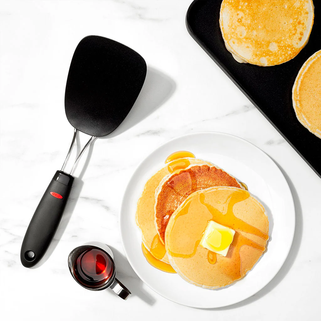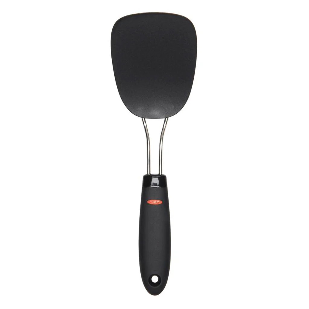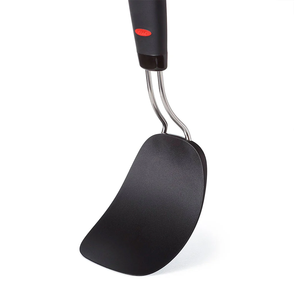 ¡Va genial! Como todo buen imprescindible de cocina, la Pala flexible de nylon SoftWorks OXO es una herramienta de lo más práctica. La longitud de su mango y su diseño de una sola pieza permiten manejarla con seguridad. Su amplia base lisa la hace muy funcional y perfecta para voltear y servir aquellos alimentos más delicados: tortitas, huevos, hamburguesas ¡y mucho más! Esta pala de nailon será la mejor compañera para tus sartenes, moldes, cazuelas o bandejas, ¡incluso antiadherentes!