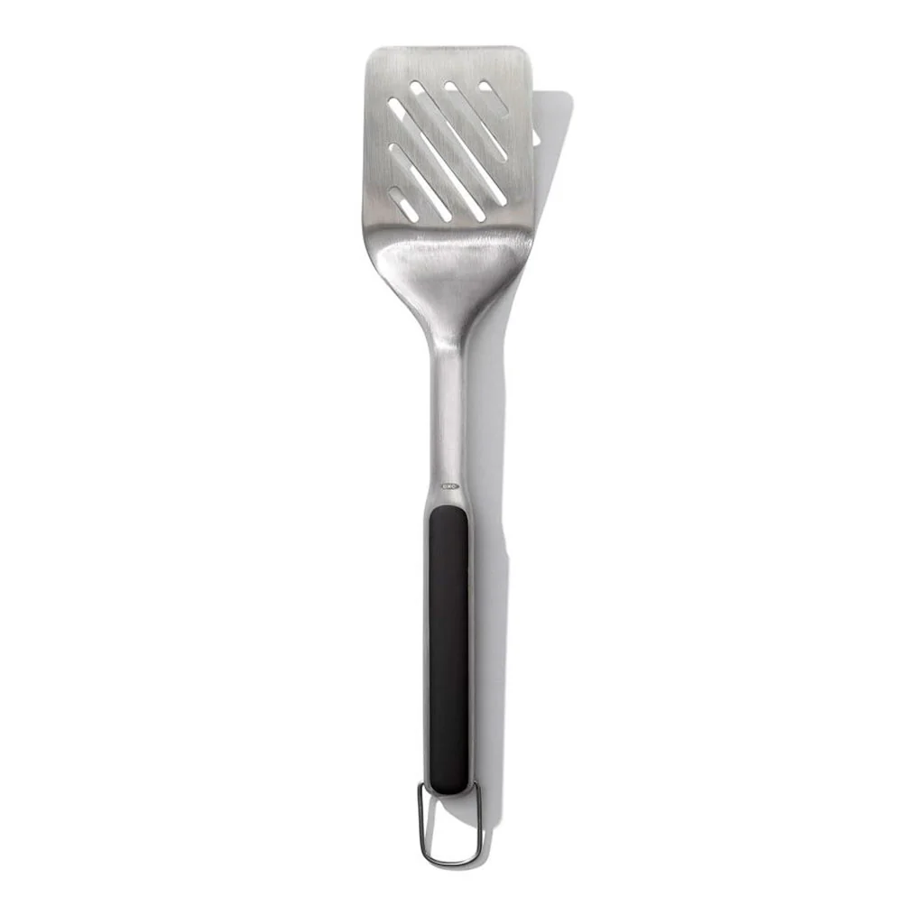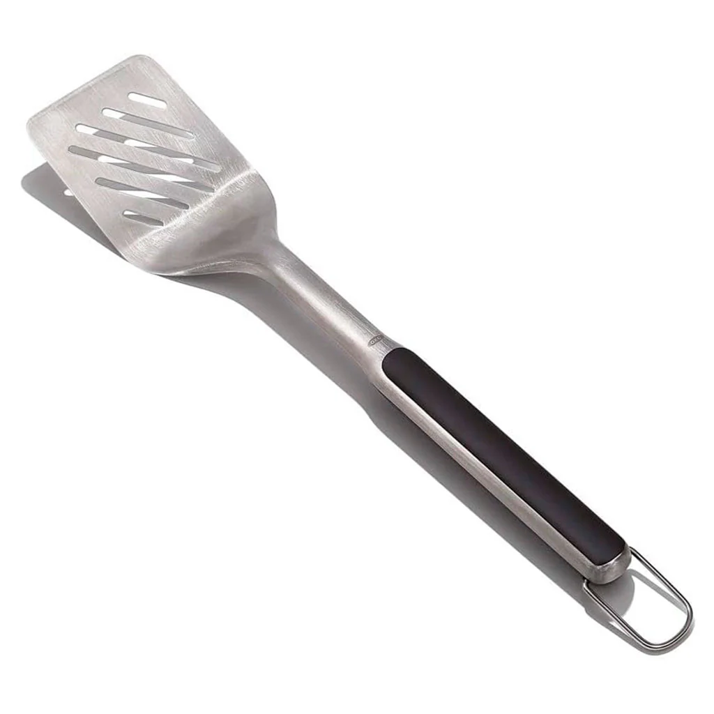 La Pala para barbacoa de acero inoxidable OXO es el aliado perfecto para disfrutar de tus carnes en una exquisita barbacoa. Esta pala tipo espátula rasera XL, con su diseño robusto y su amplio tamaño, está especialmente pensada para remover y voltear todo tipo de carnes, desde hamburguesas y bistecs hasta pollo y butifarra. Su fabricación en una sola pieza garantiza durabilidad y resistencia, mientras que su uso es sencillo y muy práctico.