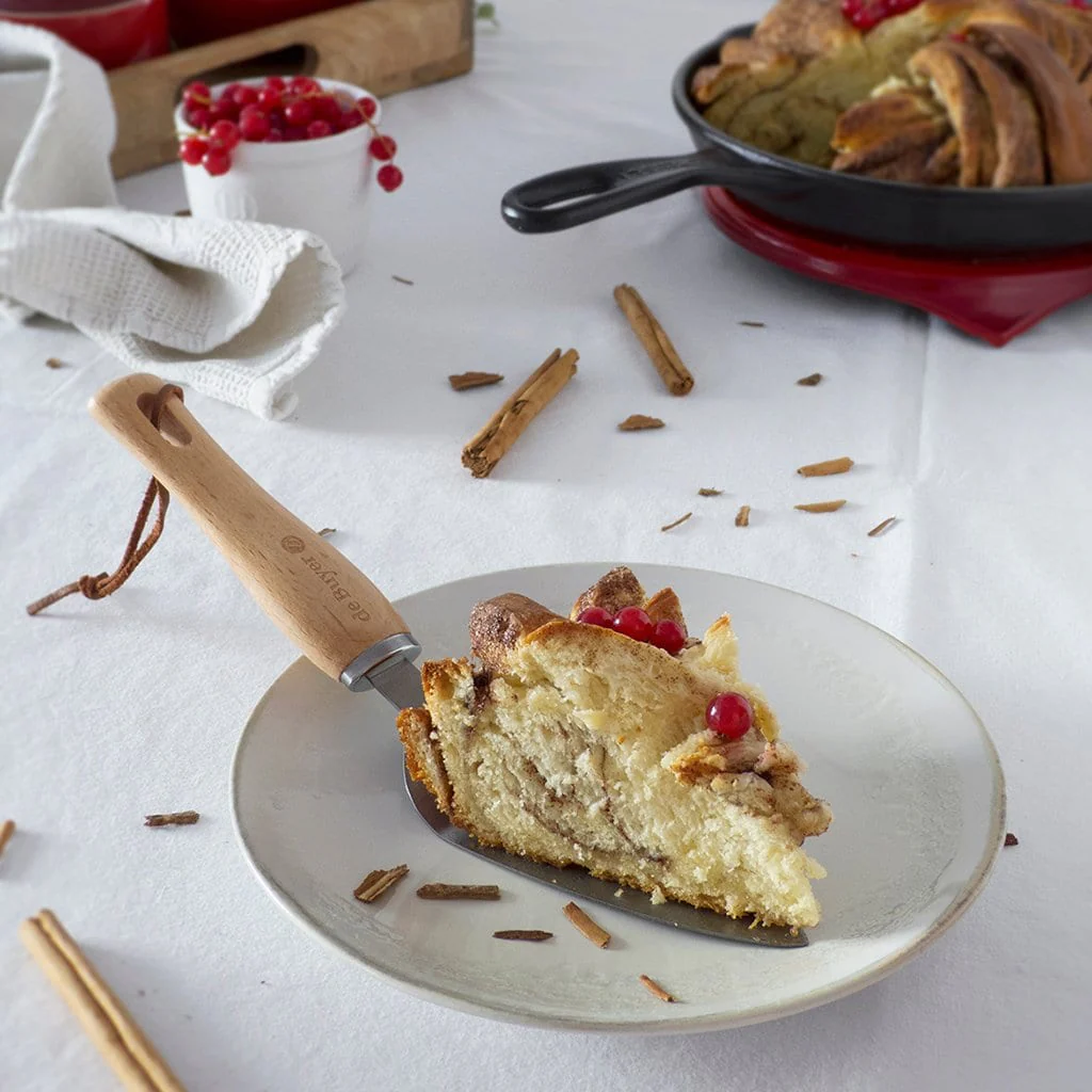 ¡La pala de De Buyer es perfecta para coger y servir porciones de pasteles y bizcochos! Está fabricada en acero inoxidable con un precioso mango fabricado en madera de haya que le da un aspecto rústico y cálido.
