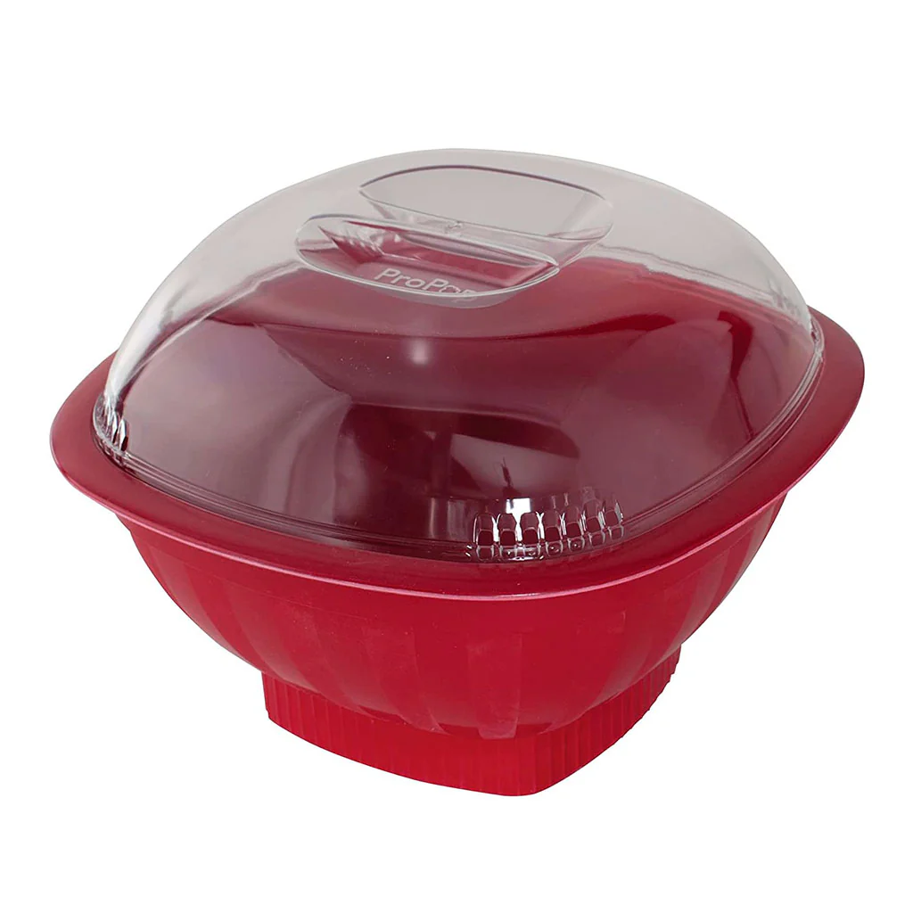 El bol está fabricado en Estado Unidos con plástico de gran calidad, libre de BPA y sin melamina, y es resistente a altas temperaturas. El diseño de la tapa en forma de cúpula permite una mayor capacidad y facilita que los granos de maíz salten sin problemas al abrirse y convertirse en palomitas. Una vez listas, sírvelas tal cual en el bol y ¡a disfrutar de la película!