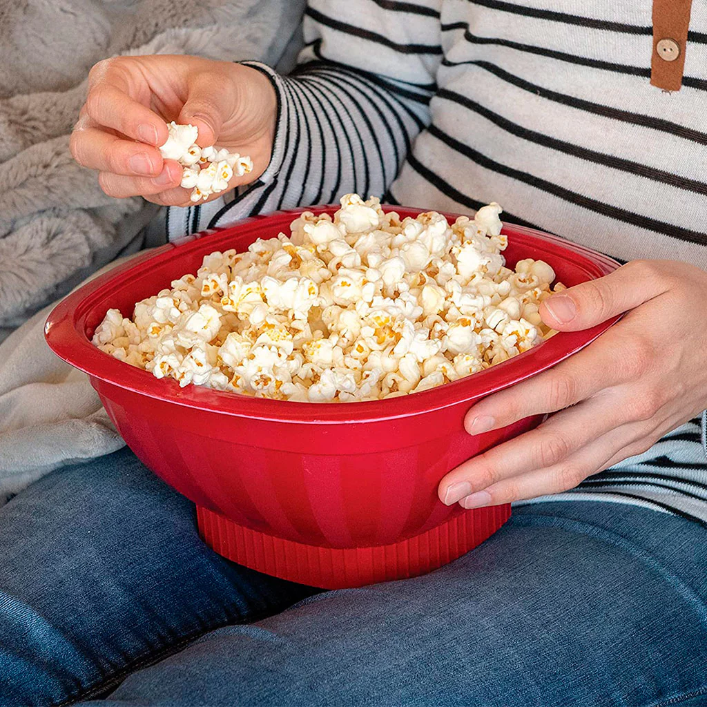 El Bol con tapa para palomitas de Nordic Ware es el pinche ideal para hacer las palomitas en el microondas, ¡sin grasas ni remordimientos! Tan sencillo como poner los granos de maíz en el cuenco, colocar la tapa y dejar que el microondas haga el resto. Con una capacidad de casi cuatro litros, ¡harás palomitas para toda la familia!