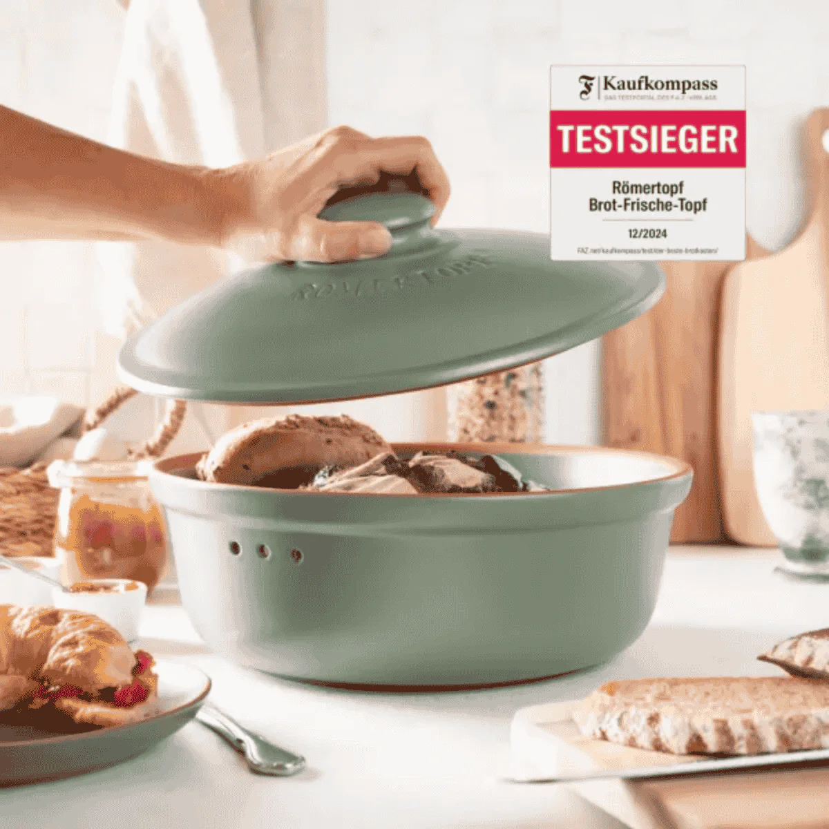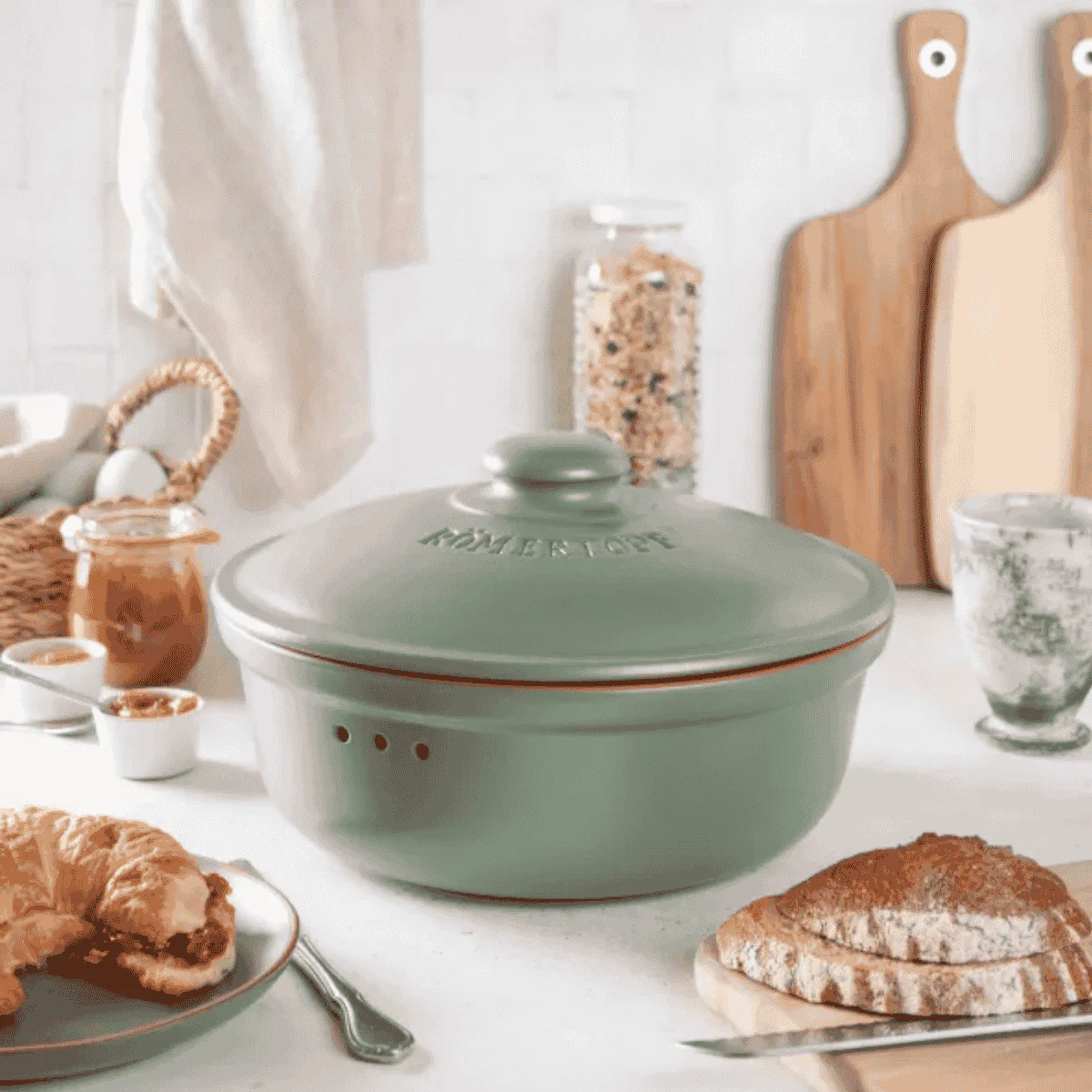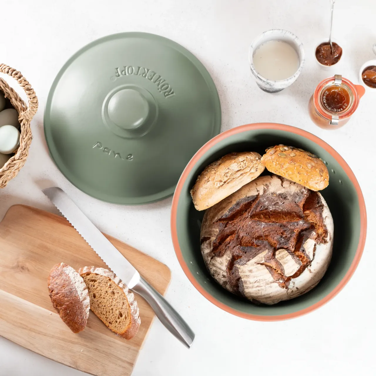 Con la Panera redonda de terracota Römertopf tendrás la mejor aliada en casa para conservar por más tiempo la frescura del pan y la bollería, y para mantener en óptimas condiciones las verduras, frutas y hortalizas. Con sus 30 cm de diámetro, esta panera con tapa, hecha de arcilla roja natural, es una pieza robusta, elegante y muy resistente. Su funcionalidad, su generoso tamaño y capacidad, y su bonito diseño atemporal hacen de ella un imprescindible en tu cocina.