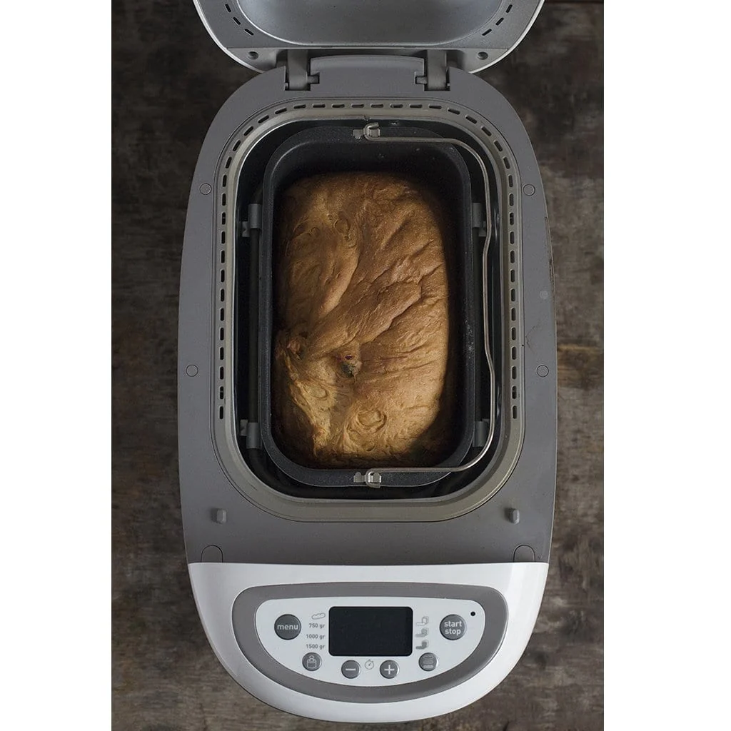 - Un libro de recetas muy completo, con el que podrás hacer desde recetas de pan tradicional, de campo, de cebolla, aceitunas, frutos secos… Pero también incluye la receta para hacer masa de pizza (que podrás estirar y hornear en el horno), deliciosa mermelada casera o bizcochos, entre otras. Todo recetas muy fáciles y pensadas para disfrutar.