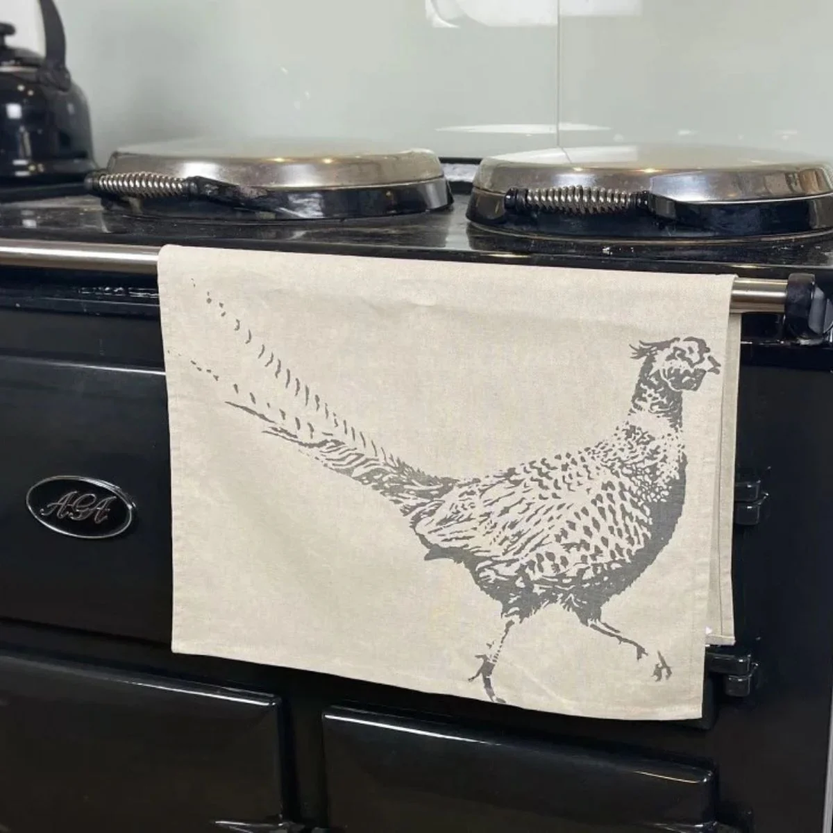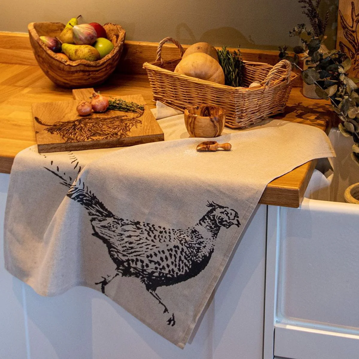 - Paño de cocina de lino natural con diseño serigrafiado a mano.