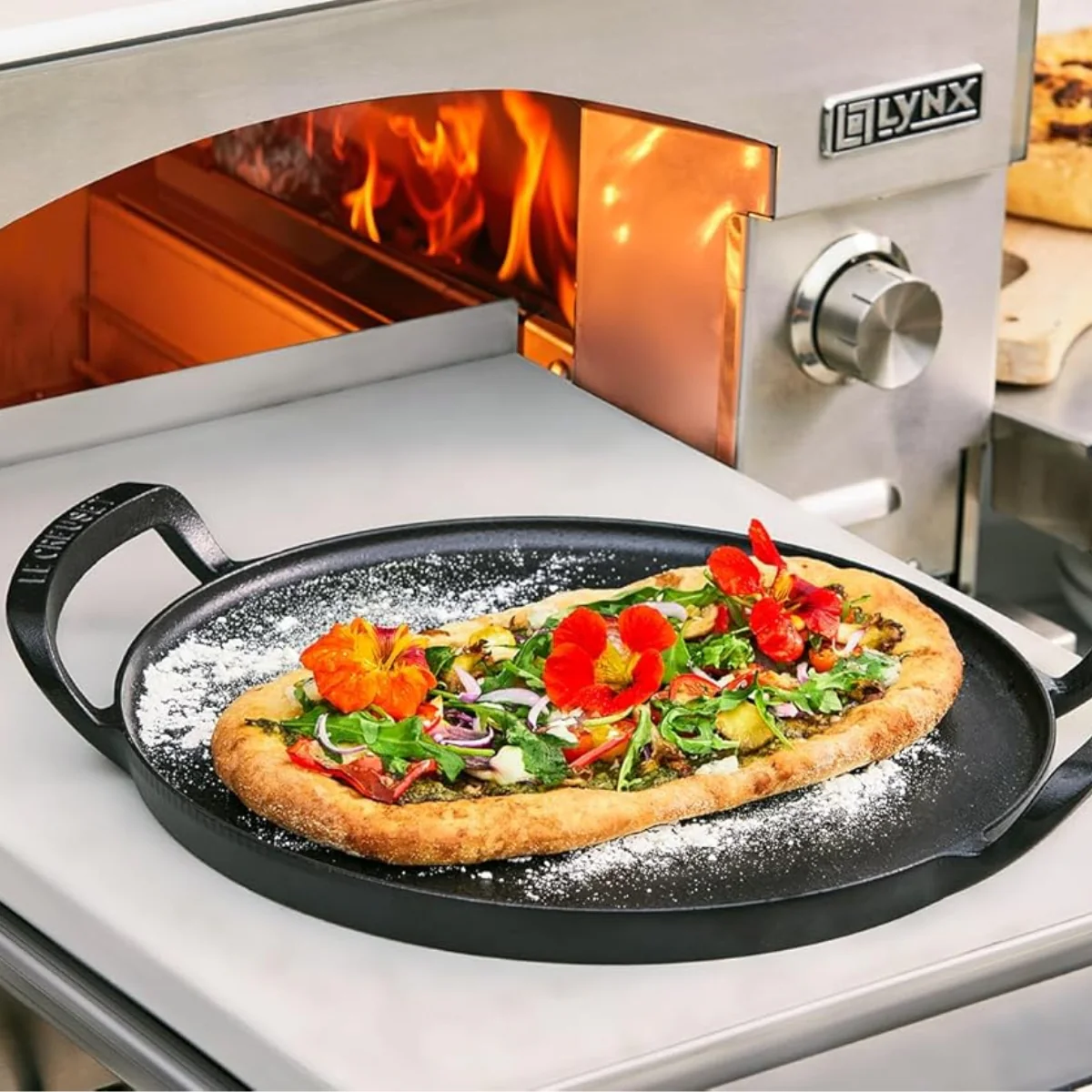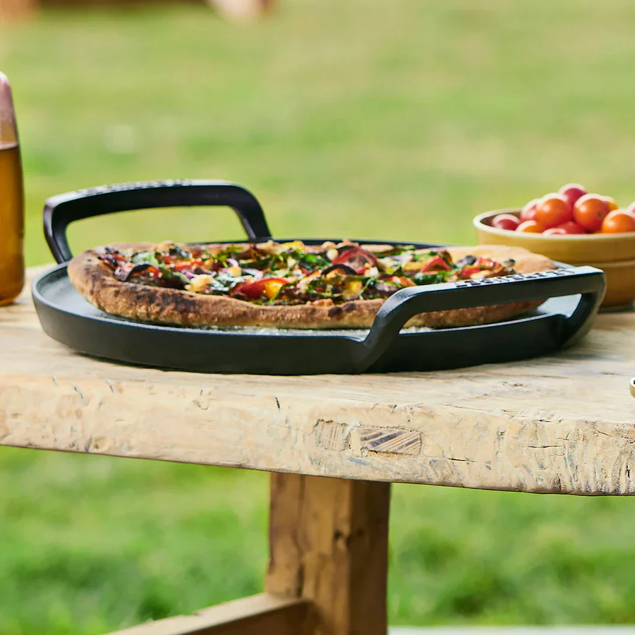Por qué nos gusta la Parrilla redonda lisa y bandeja para pizza hierro fundido Outdoor Le Creuset