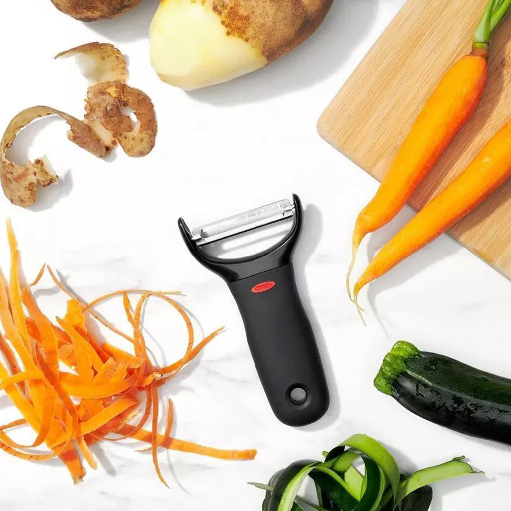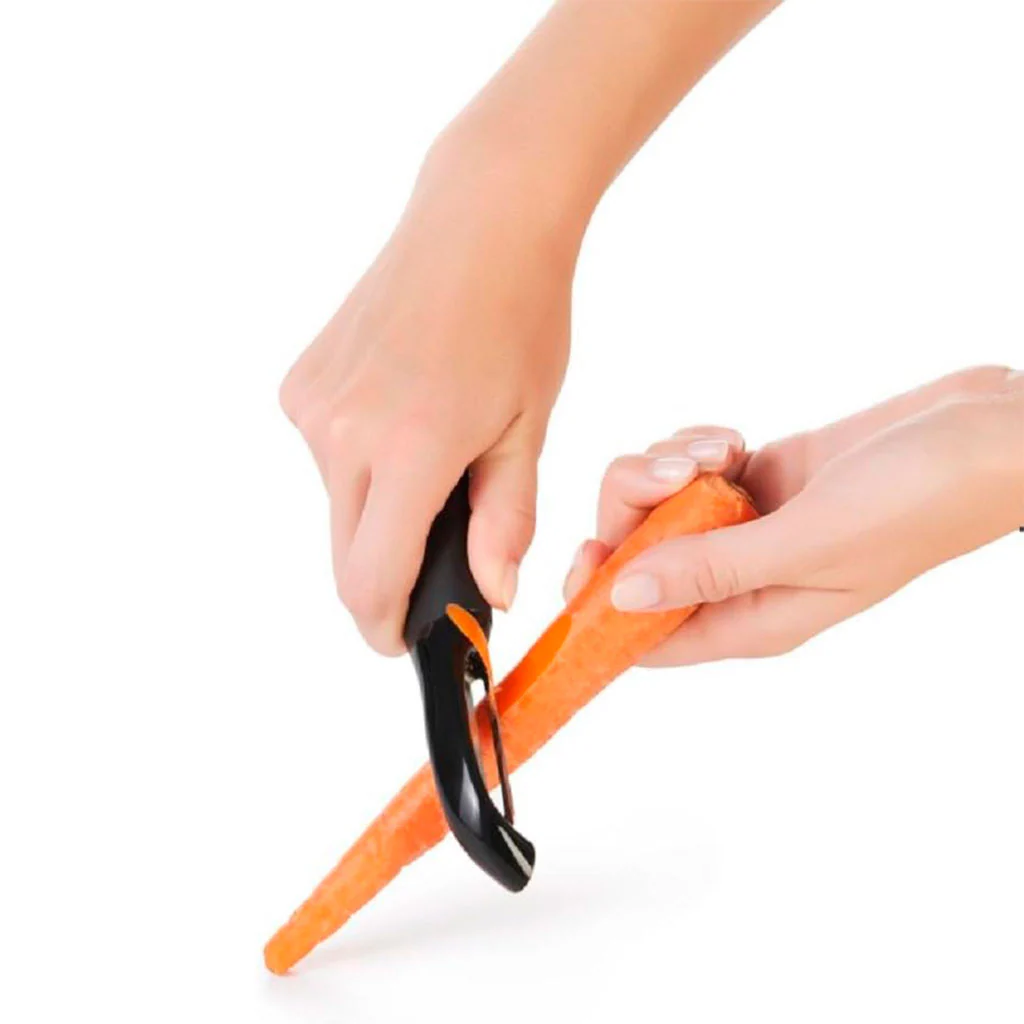 - Pelador Pendular en Y: Ideal para una variedad de alimentos, desde frutas y verduras con piel fina hasta aquellas con piel gruesa o para cortar en tiras finas.