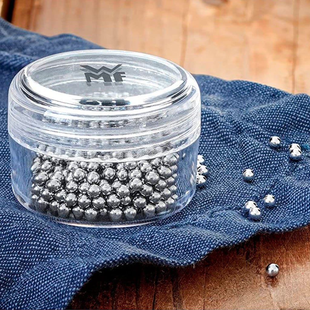 Las perlas de limpieza de acero Cromargan de WMF son ideales para limpiar la suciedad que queda dentro de las jarras. Y aparte de limpiar, ¡Te ayudarán a eliminar los olores!
