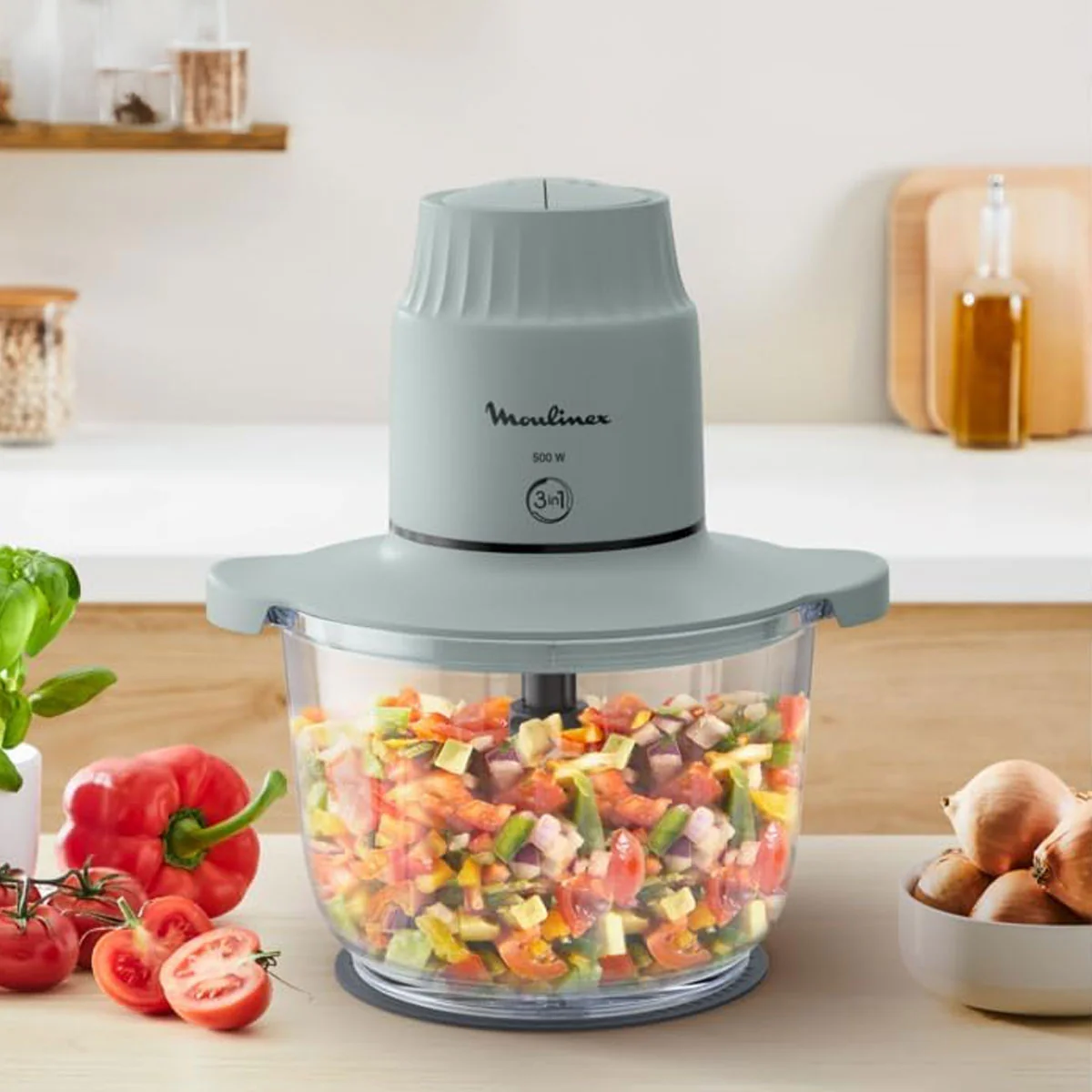 La picadora de mano eléctrica Choppeo Moulinex va a revolucionar tu cocina sin ningún tipo de duda. Esta picadora eléctrica con vaso de cristal incluye 3 funciones en una única pieza: permite trocear, mezclar y picar de manera rápida, dando a elegir entre dos velocidades diferentes para conseguir la textura y la suavidad deseadas. Es un electrodoméstico de lo más eficaz, como Moulinex siempre hace los básicos imprescindibles.